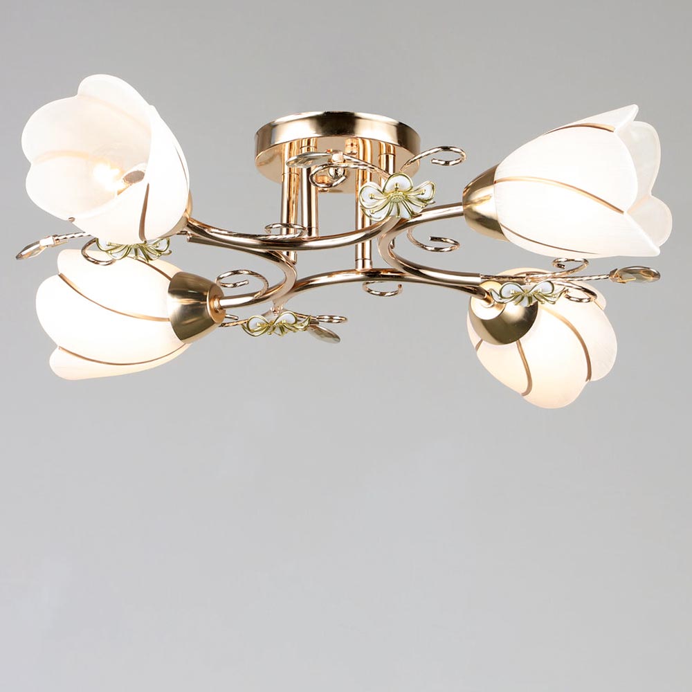 Стельові люстри на чотири лампи в флористику стилі.Найкраще використовувати у приміщенні із загальною площею 12 м2, при використанні лампочок 6 Вт (LED) або 60 Вт (стандартна).