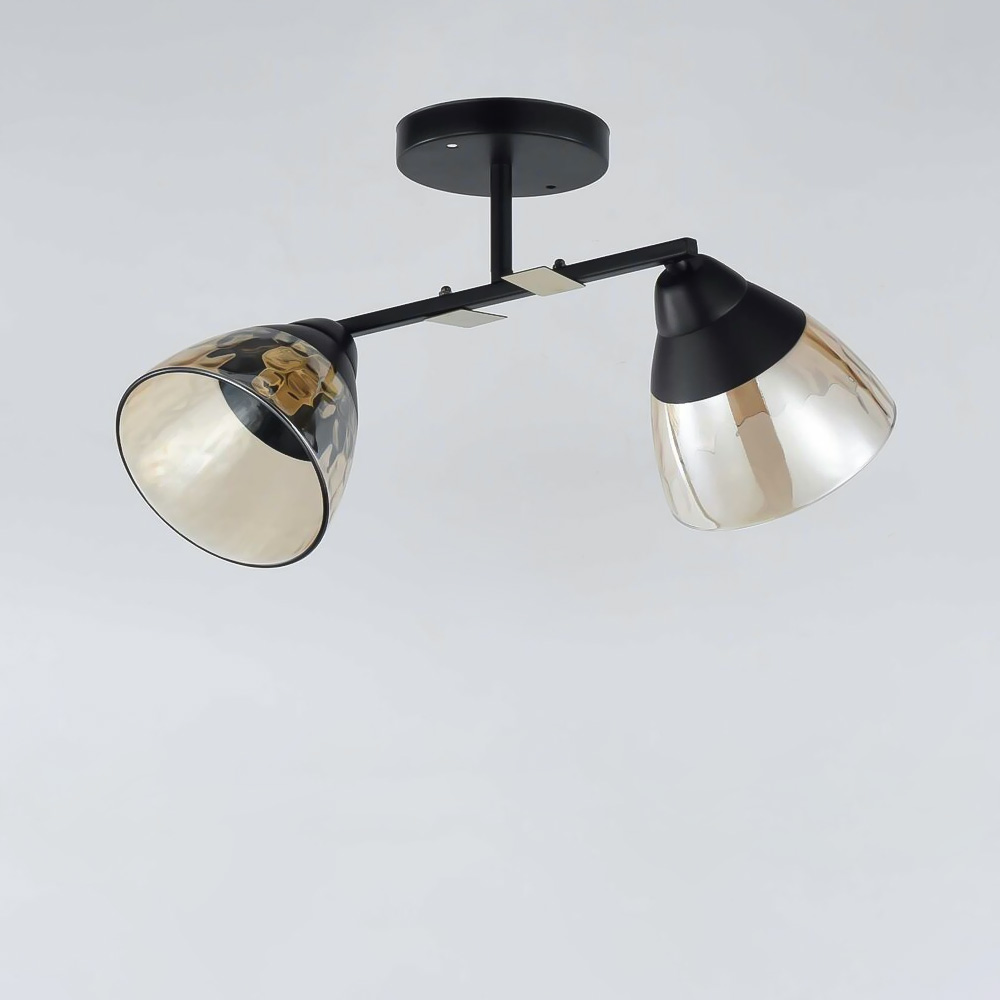 Стельова люстра на два плафони конусної форми, які розсіюють світло рівномірно і створюють приємну атмосферу, має стильний і сучасний дизайн, що надає шарму та елегантності вашому простору. Вона підходить для різних інтер'єрів, чи то сучасний, класичний чи інший стиль.