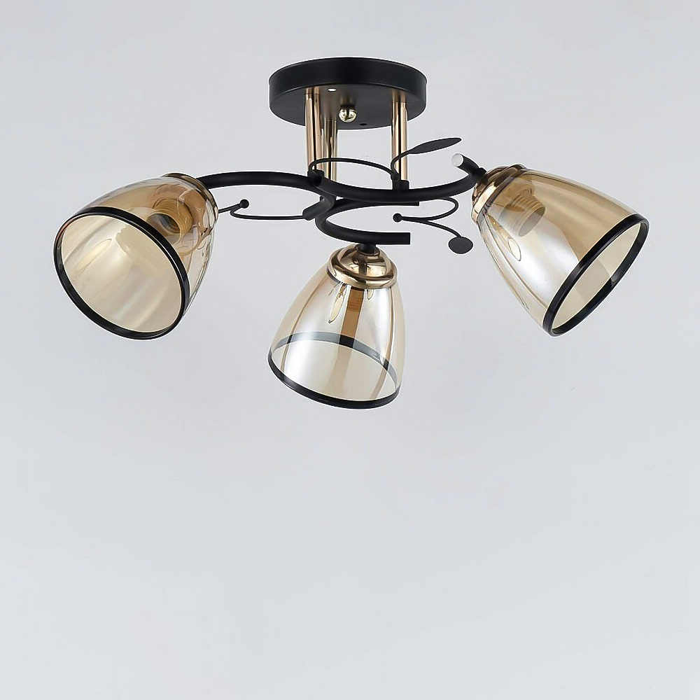 Люстра стельова Light House SRS-19030/3 чорна із золотом, плафон медовий з облямівкою