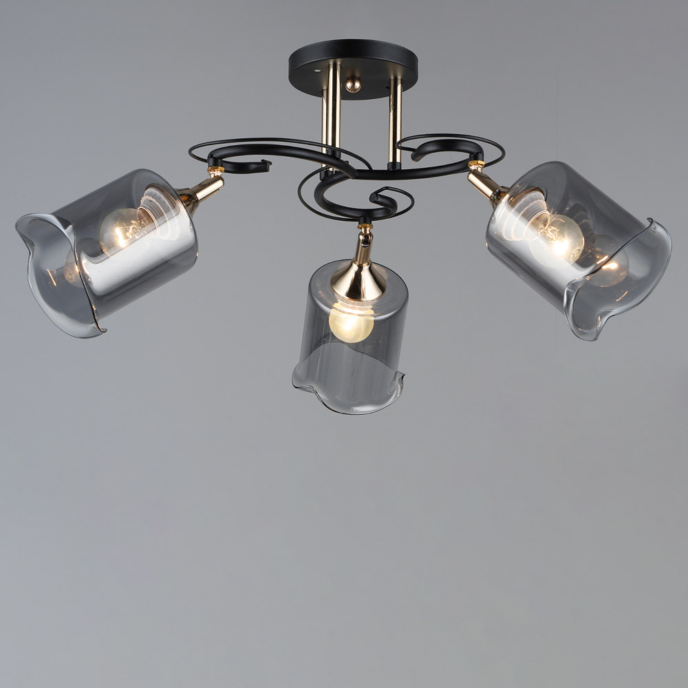 Люстра стельова Light House SRS-19033/3 чорна із золотом, плафон димчастий