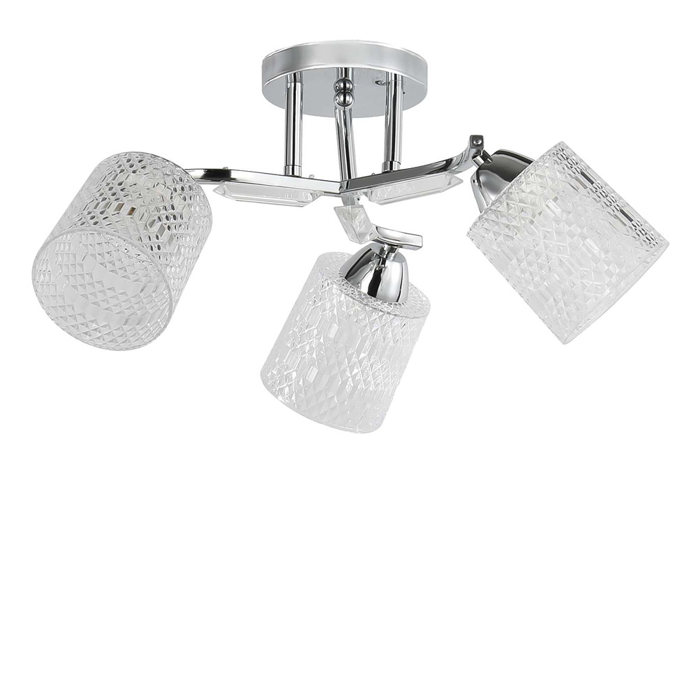 Люстра стельова Light House SRS-19034/3 хром, плафон прозорий з текстурою