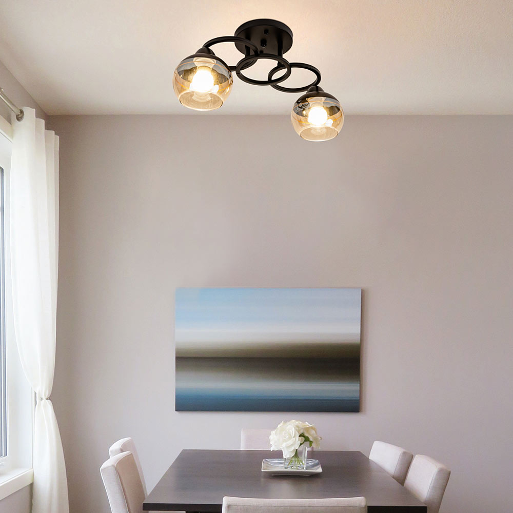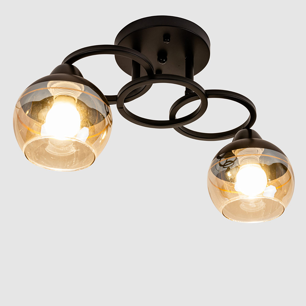 Люстра стельова Light House SRS-19054/2А чорна, плафон бурштиновий