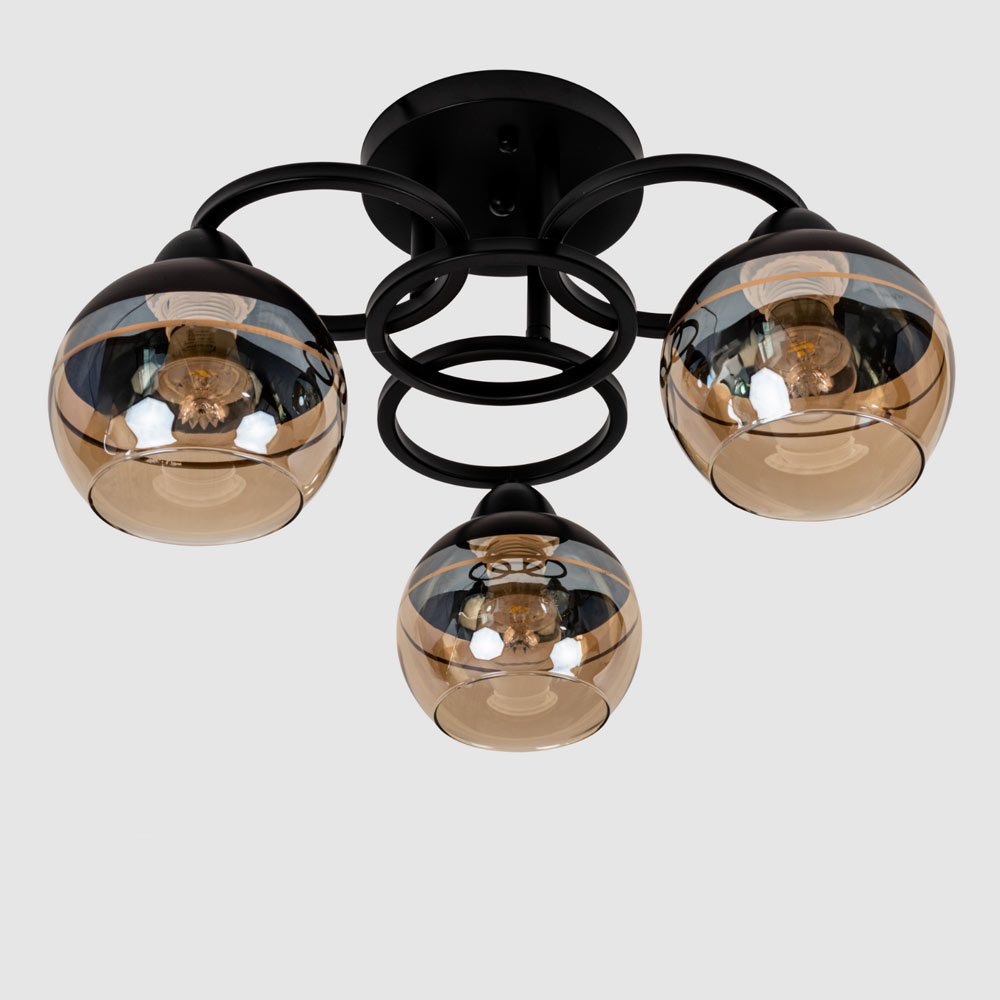 Люстра стельова Light House SRS-19054/3А чорна, плафон бурштиновий