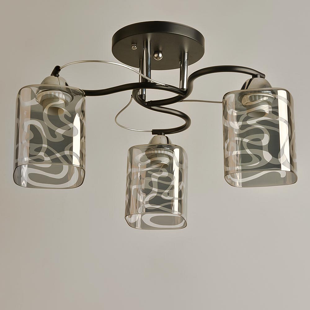 Люстра стельова Light House SRS-19059/3 чорна + хром, плафон димчастий з візерунком