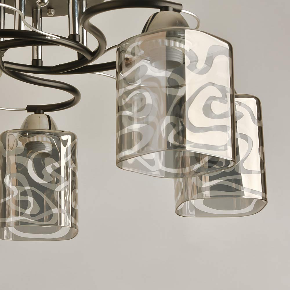 Люстра стельова Light House SRS-19059/5А чорна + хром, плафон димчастий з візерунком