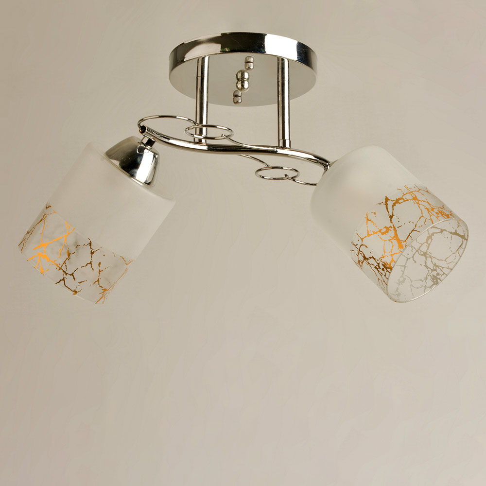 Стельова люстра на дві лампи зі скляними плафонами циліндричної форми, які розсіюють світло рівномірно і створюють приємну атмосферу, має стильний і сучасний дизайн, що надає шарму та елегантності вашому простору. Вона підходить для різних інтер'єрів, чи то сучасний, класичний чи інший стиль.