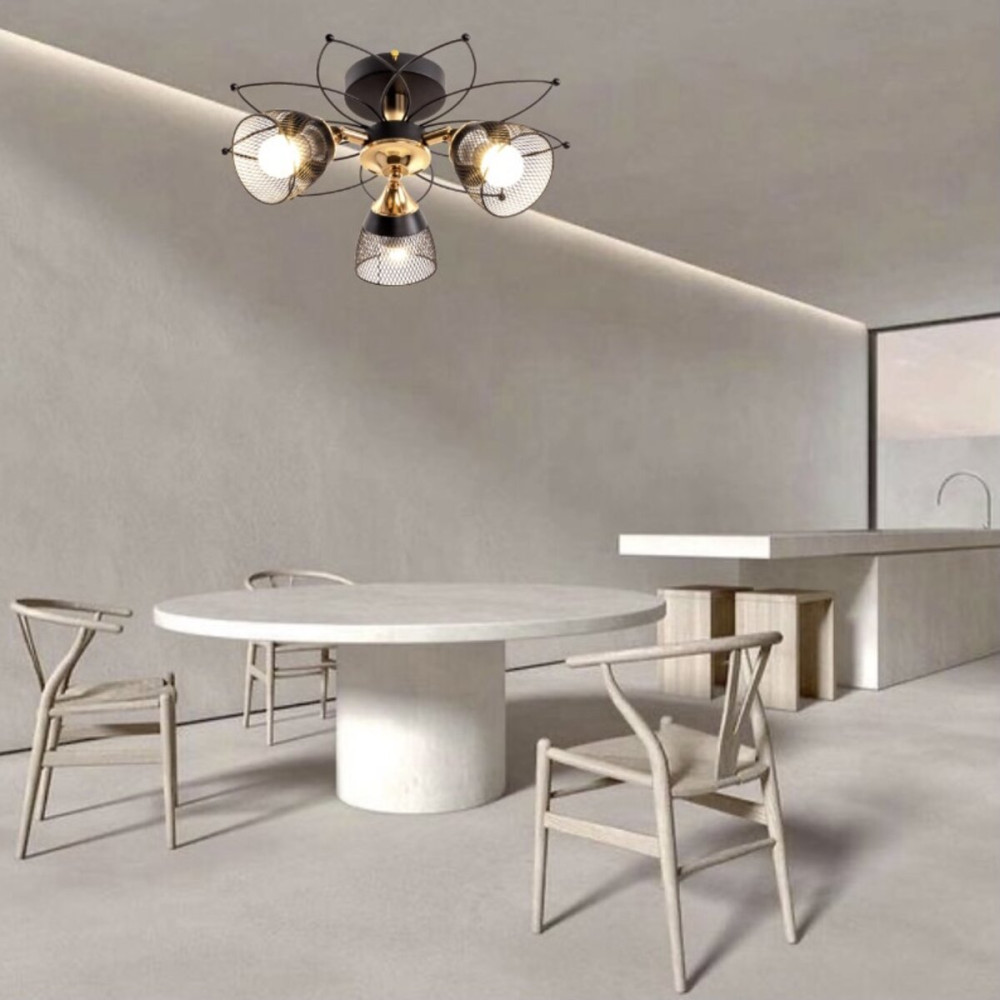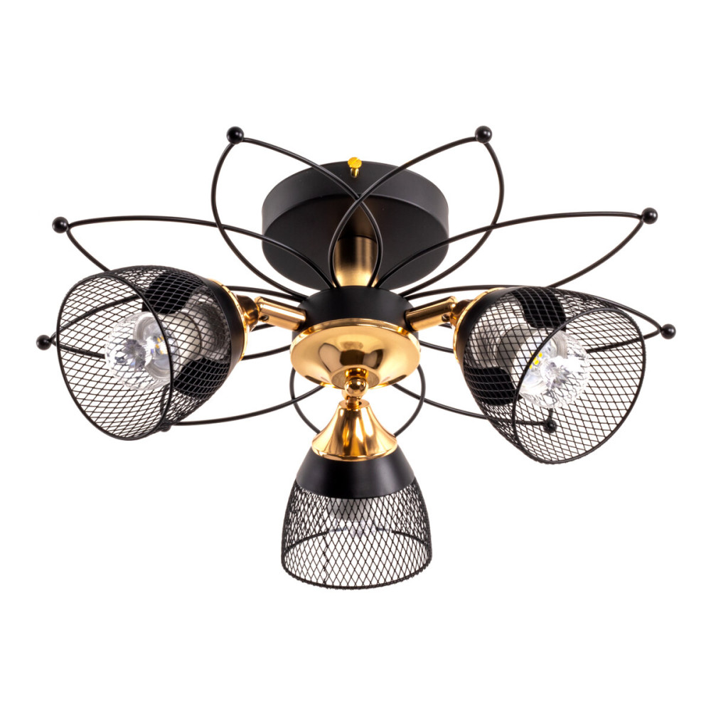 Основною особливістю цієї люстри є три плафони – металеві сіточки чорного кольору, які надають оригінального та вишуканого вигляду освітленню. Вони створюють гру світла та тіней, надаючи виразності інтер'єру.