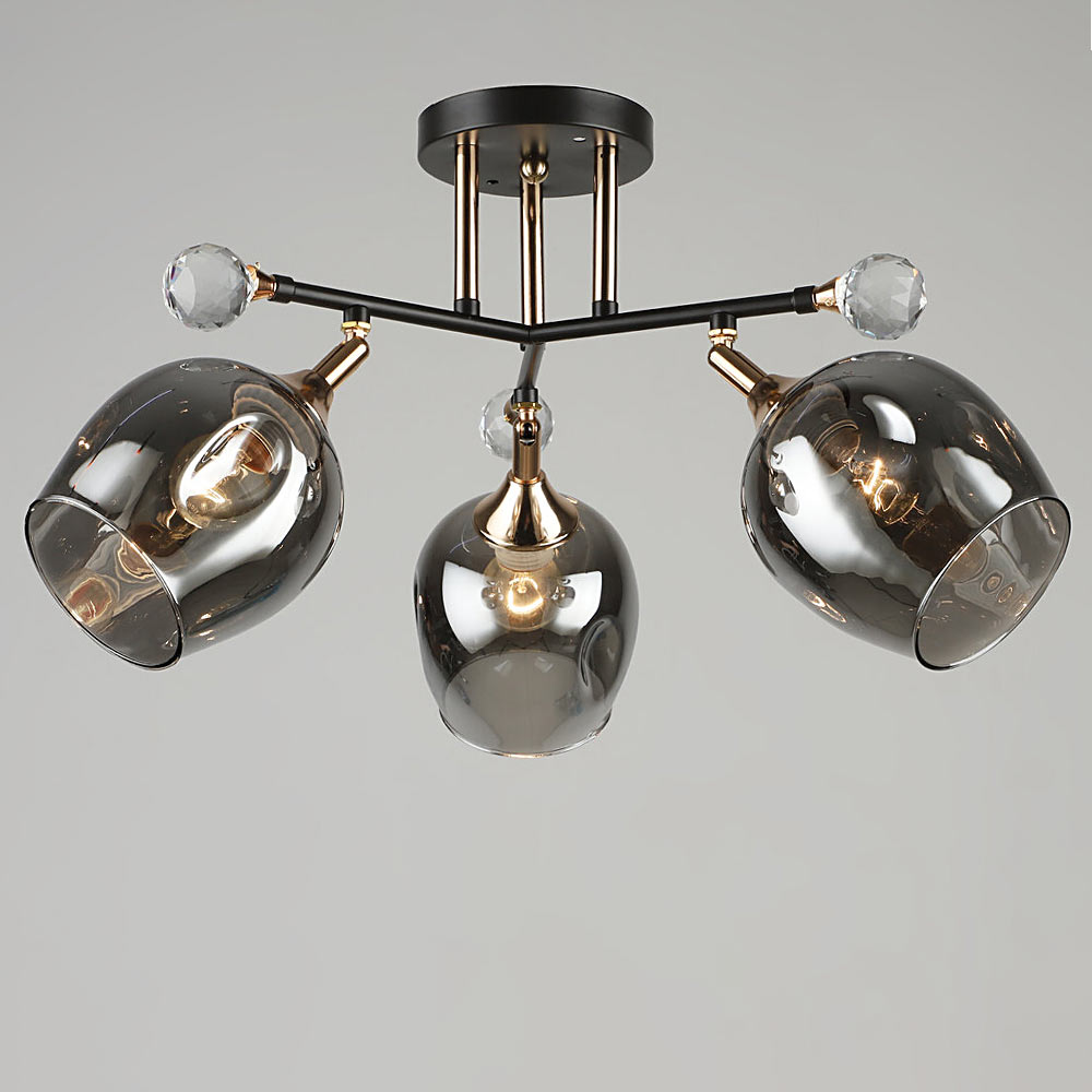 З діаметром 540 мм та висотою 280 мм, ця люстра стане незамінним джерелом світла для вашого простору. Три плафони зі скла відтінку кави з позолотою у формі півсфер подарують вам приємний розсіяний світловий відтінок.
