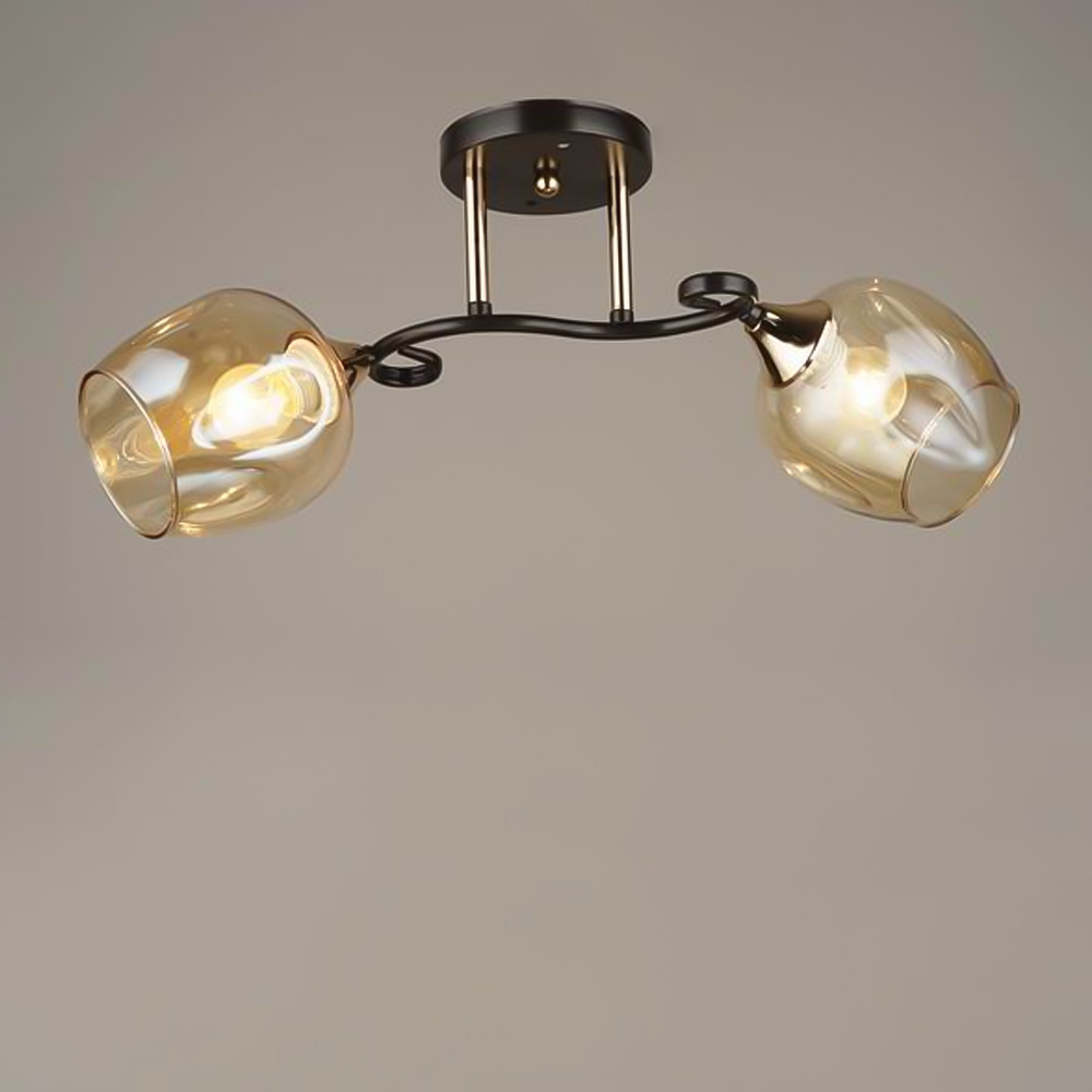 Люстра стельова Light House SRS-19224/2 чорний + золото, плафон бурштиновий