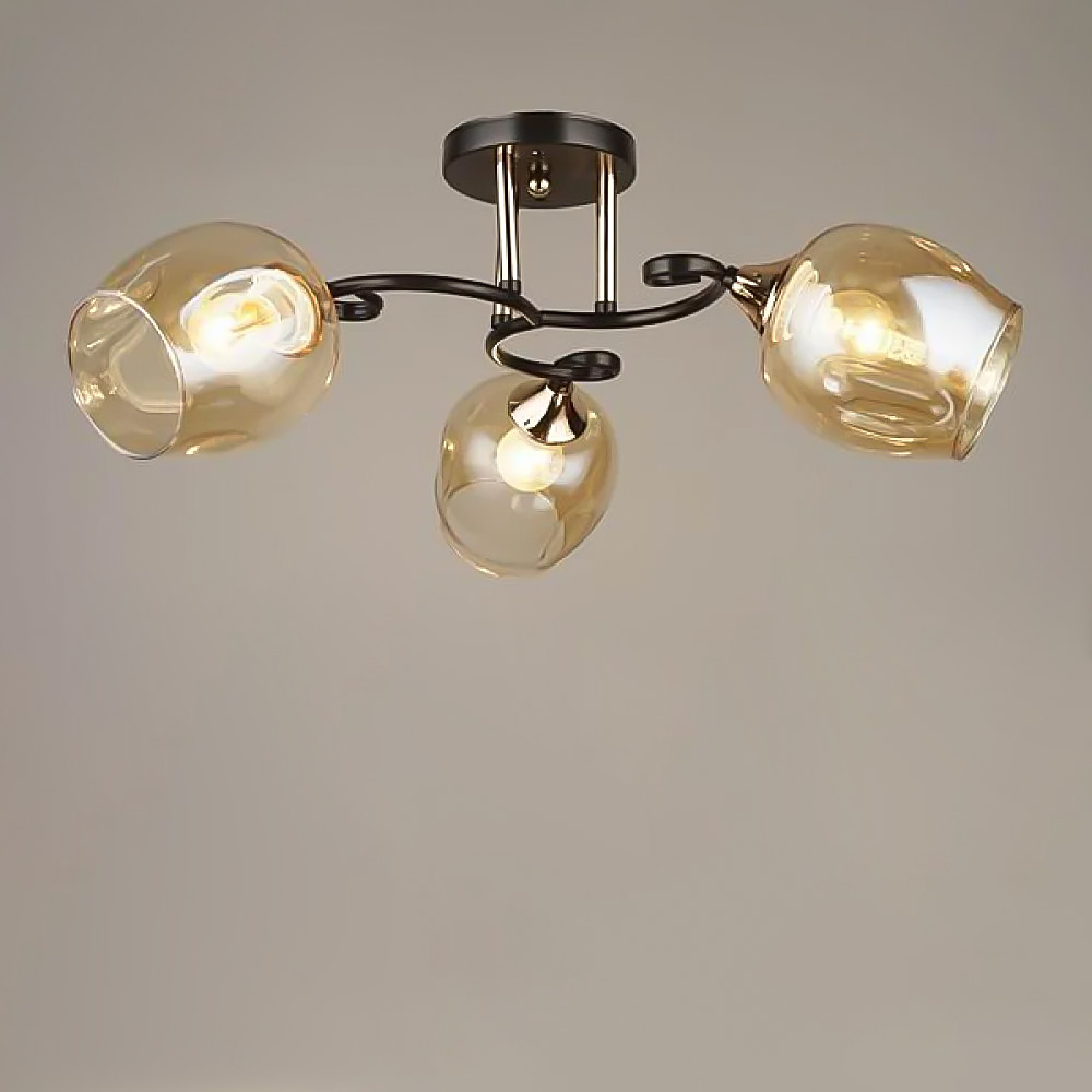 Стильна стельова люстра на три лампи зі скляними декоративними плафонами овальної форми.
