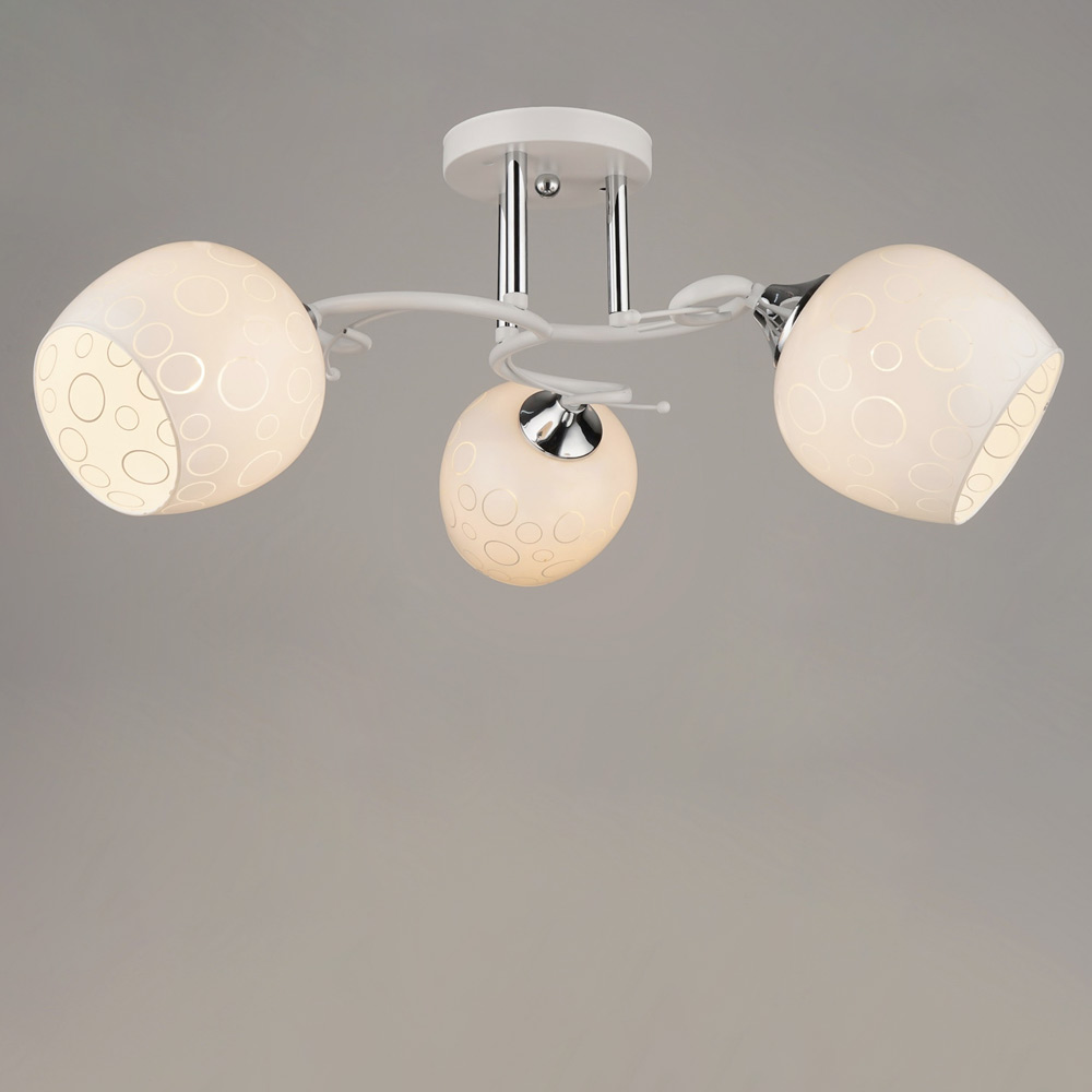 Люстра стельова на три скляні плафони з візерунками, має каркас із металу білого з елементами хромового кольору, що надає люстрі Light House SRS-19243/3 вишуканості та стилю.