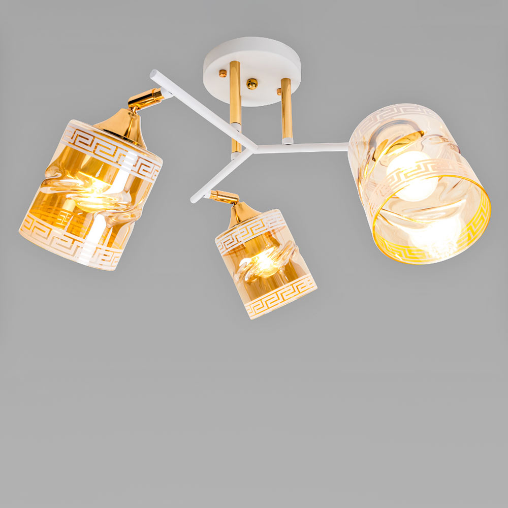 Стильна стельова люстра на три лампи із скляними плафонами циліндричної форми з поворотним механізмом.