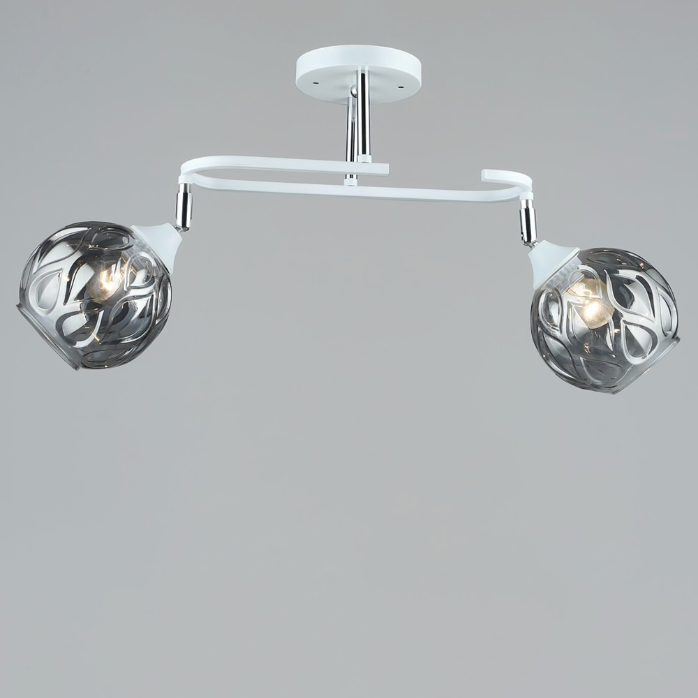 Каркас виготовлений з металу білого та хромового кольору, що надає люстрі стильності та сучасного шарму. Ця дивовижна люстра з двома круглими плафонами хромового відтінку виглядає неймовірно в сучасних інтер'єрах. Плафони мають поворотний механізм, що дозволяє налаштовувати напрямок світла за власними потребами.