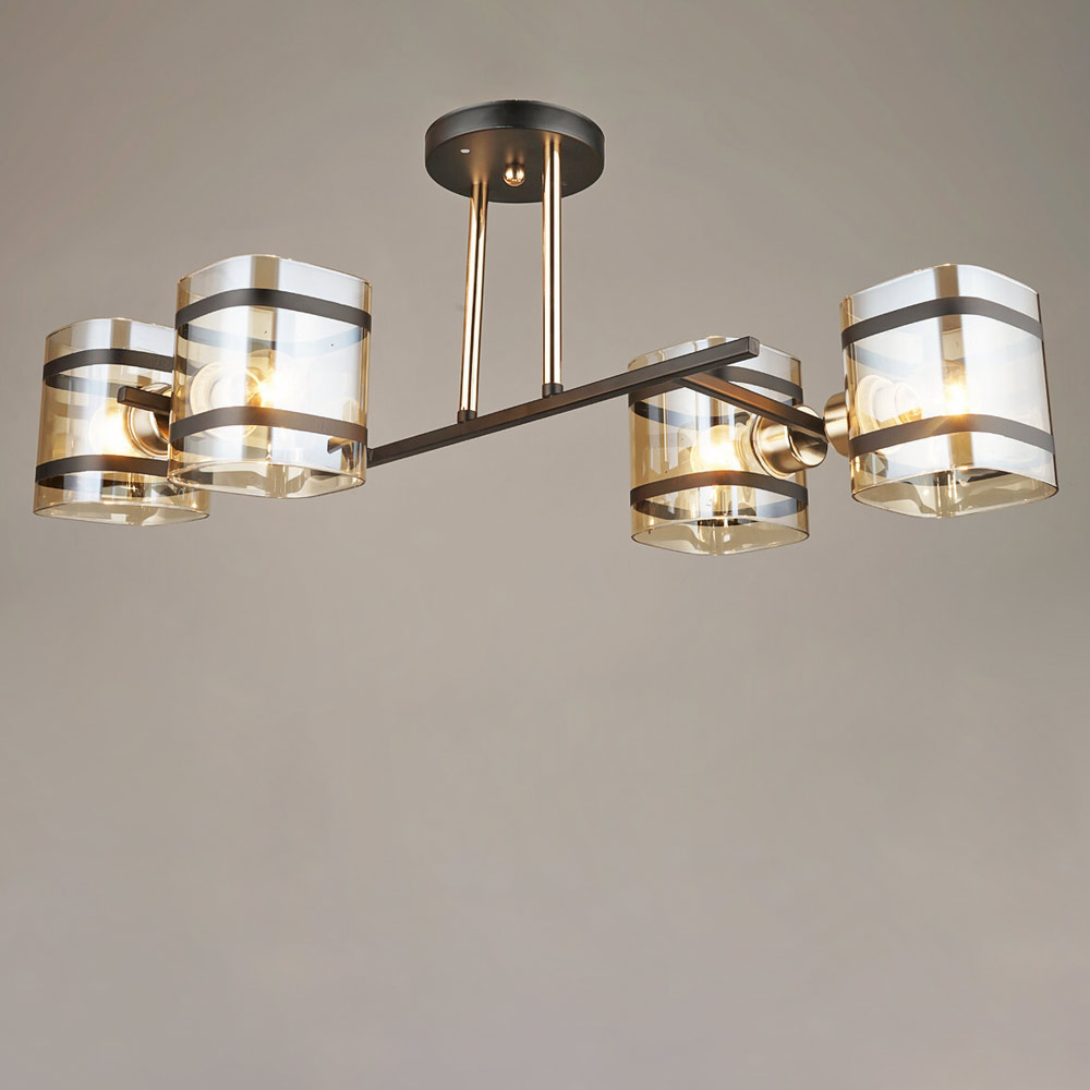 Люстра стельова Light House SRS-19641/4 чорна із золотом, плафон бурштиновий