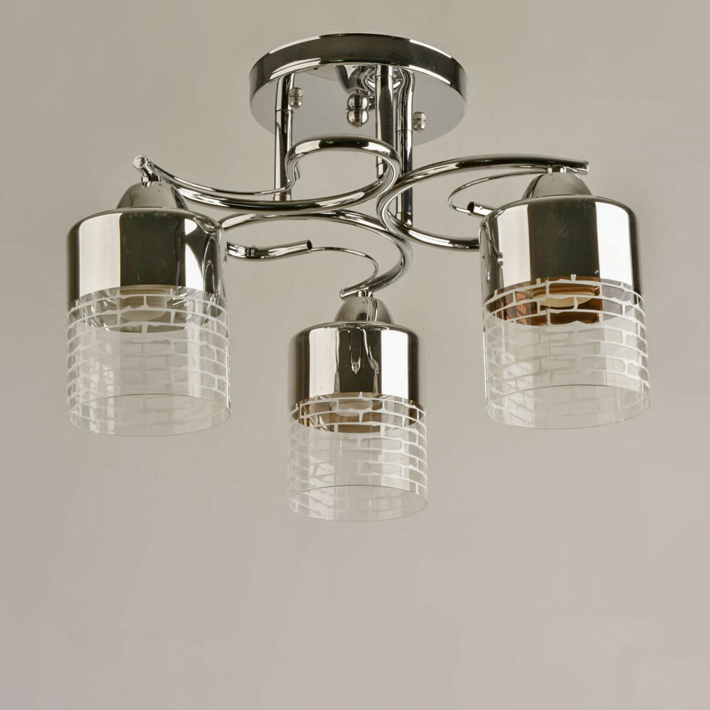 Стельова люстра на три лампи зі скляними плафонами циліндричної форми, які створюють приємну атмосферу, має стильний і сучасний дизайн, що надає шарму і елегантності вашому простору. Вона підходить для різних інтер'єрів, чи то сучасний, класичний чи інший стиль.