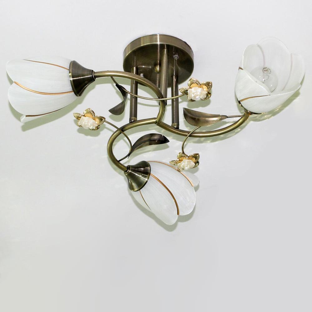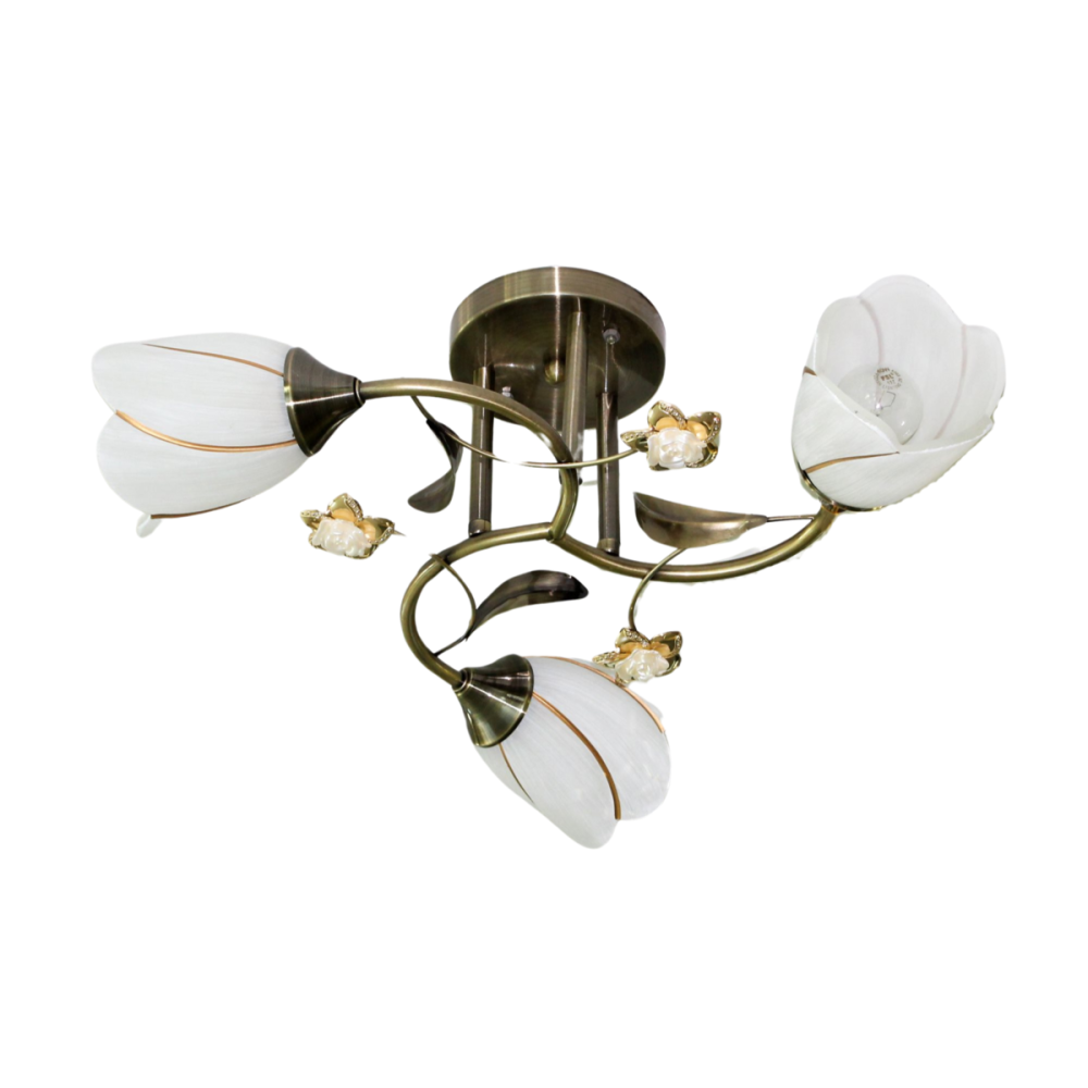 Стельові люстри на три лампи в флористику стилі. Найкраще використовувати у приміщенні із загальною площею 9 м2, при використанні лампочок 6 Вт (LED) або 60 Вт (стандартна).