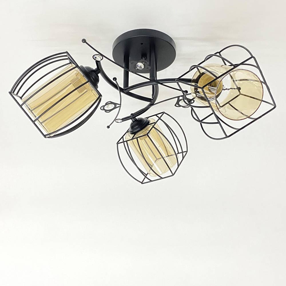 Люстра стельова Light House SRS-20304/3 чорна, плафони бурштинові