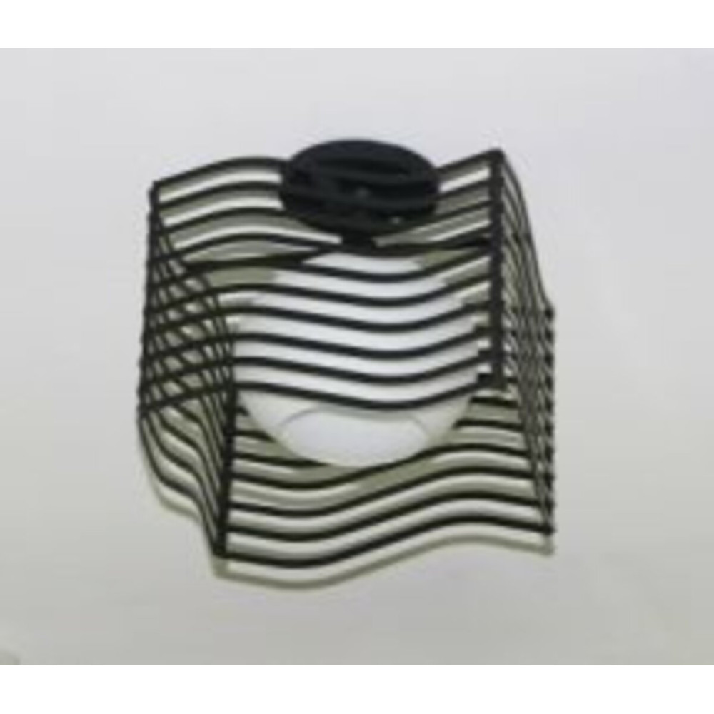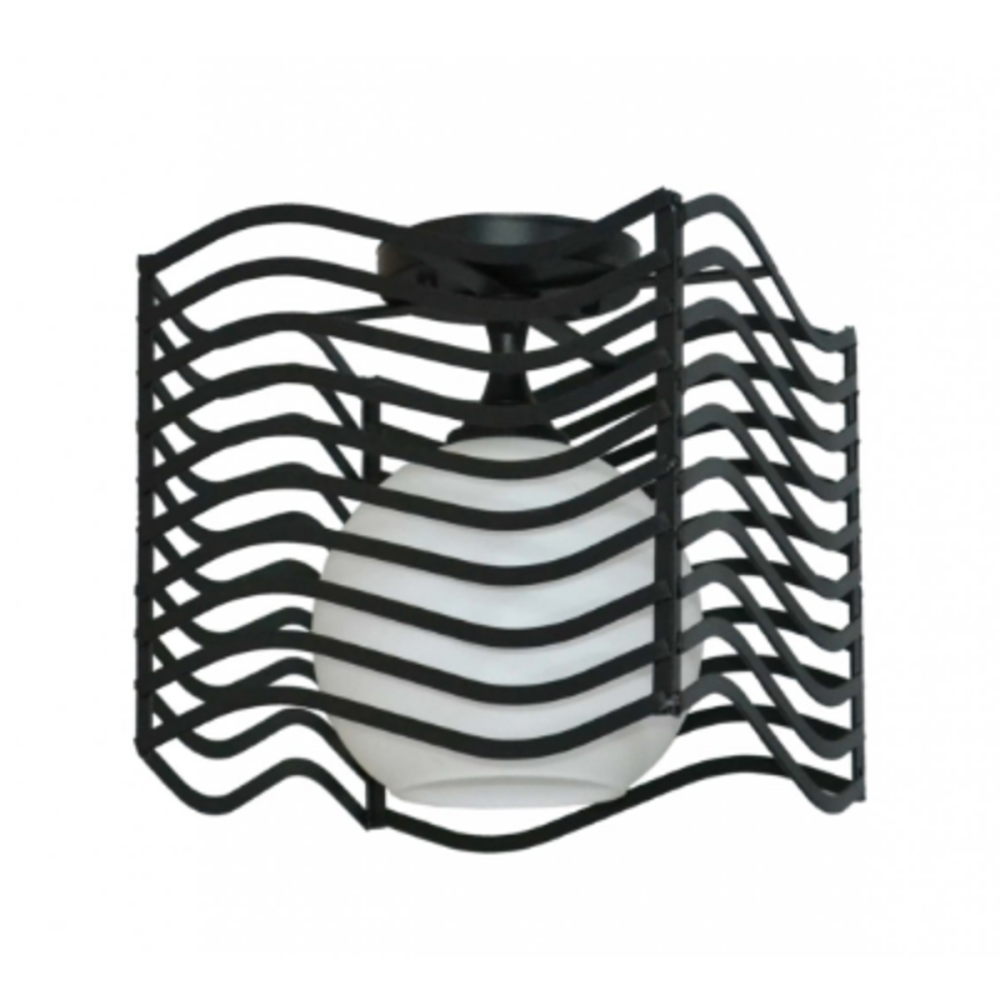Сучасна стельова люстра на одну лампу зі скляним плафоном у вигляді кулі та декоративними металевими ґратами навколо, за рахунок яких створюється елегантний світлотіньовий ефект: що цікаво проявляється при включеному джерелі світла. Найкраще ця люстра підійде для освітлення 3 м² приміщення, при використанні лампочок 6 Вт (LED) або 60 Вт (стандартна). Може застосовуватися для локального освітлення, або як додаткове джерело світла.