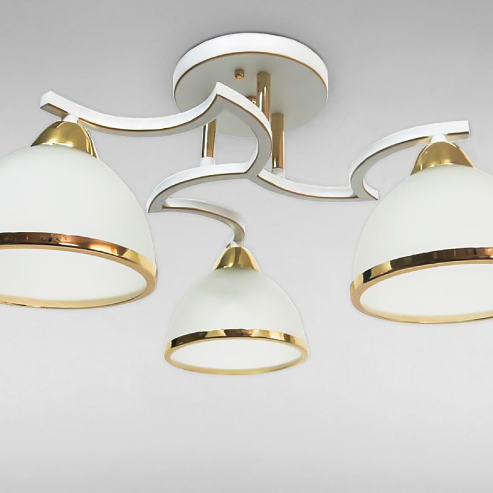 Стельова люстра в сучасному стилі на три лампи з плафонами у формі купола.