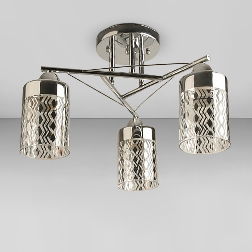 Люстра стельова Light House SRS-18925/3А хром, плафон прозорий з візерунком
