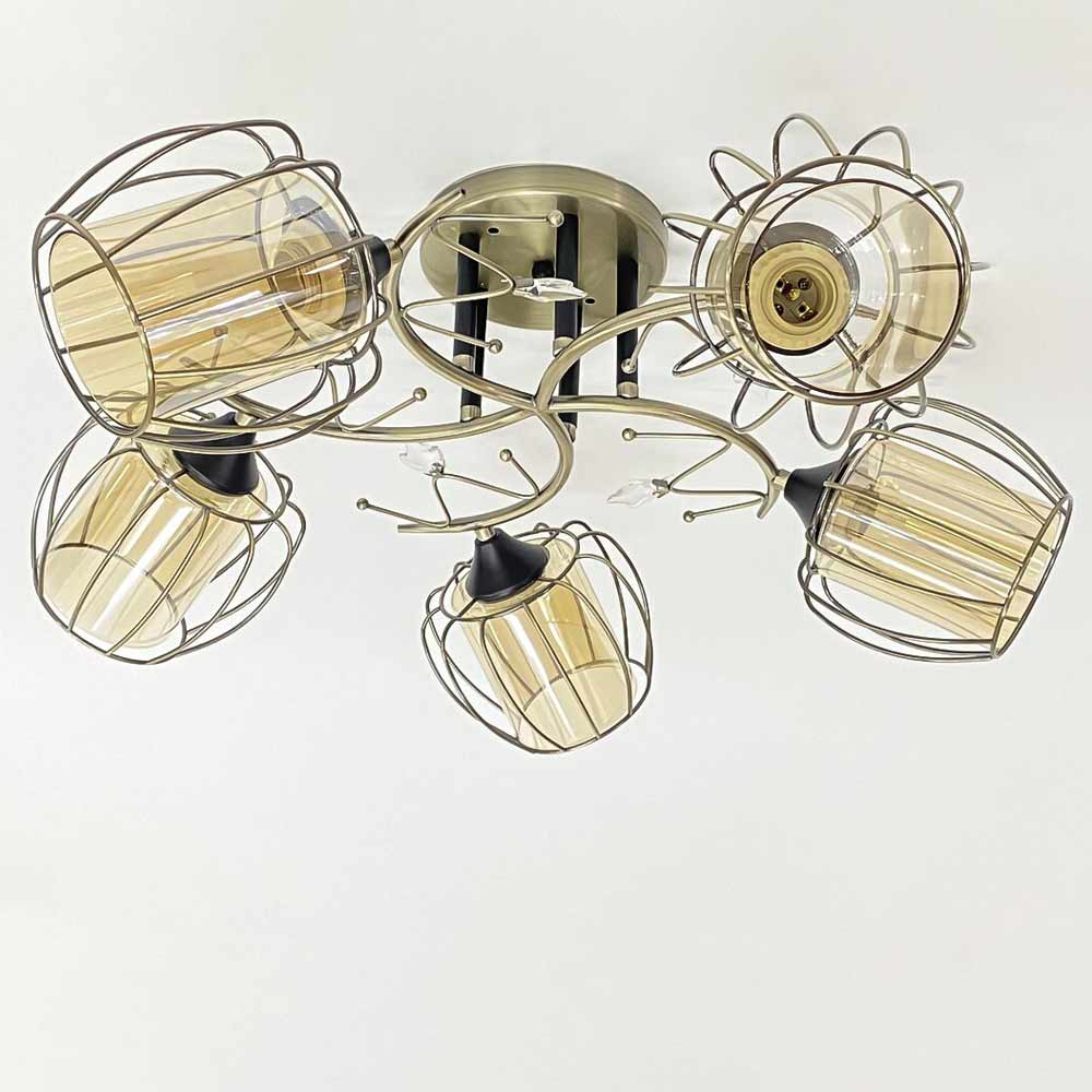 Люстра стельова Light House SRS-20305/5 бронза + чорний, плафони бурштинові