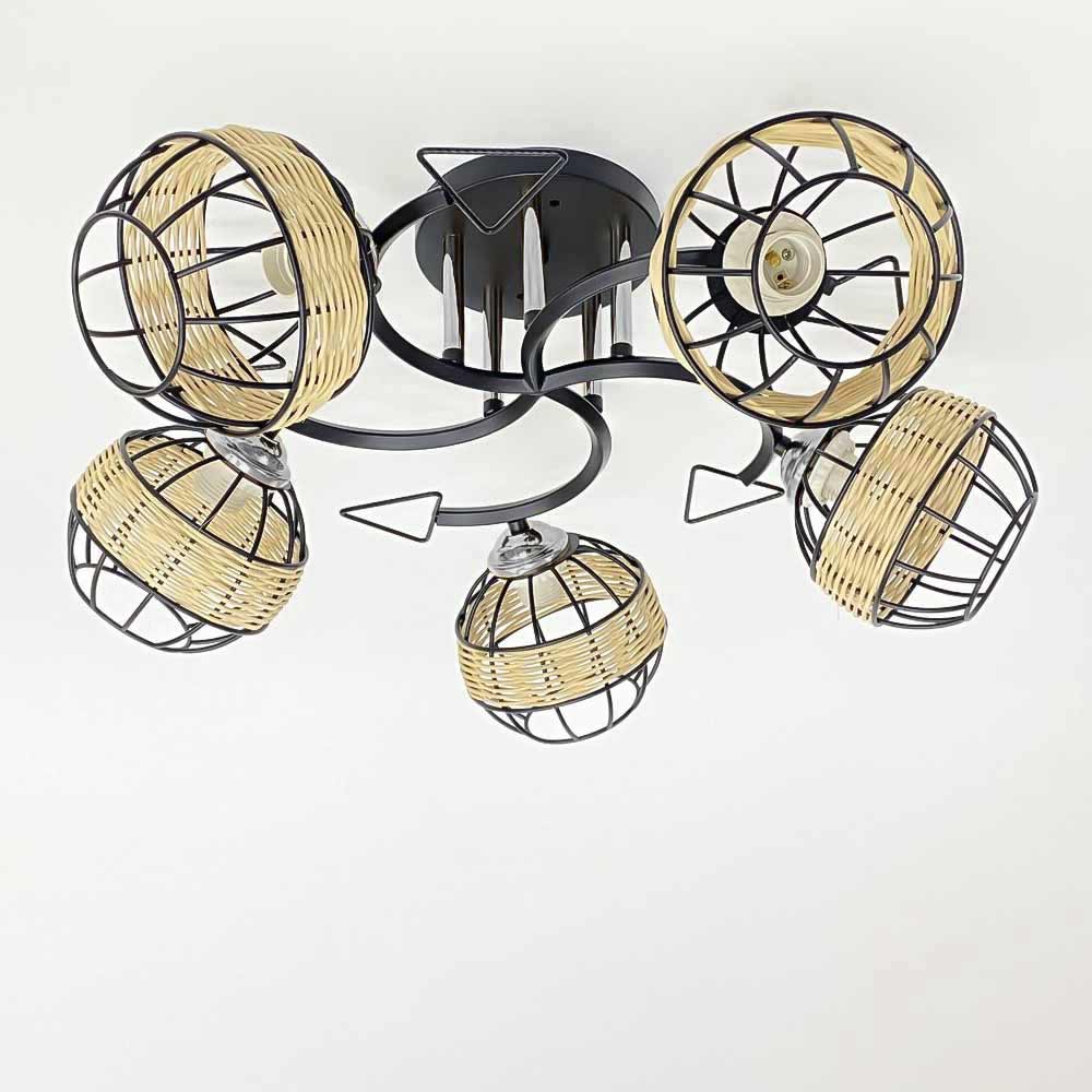 Стельова люстра в стилі Лофт на п'ять ламп з плафонами сферичної форми. Металеві плафони виконані у вигляді округлої клітини та прикрашені декоративним плетінням: що забезпечує цікаву гру світла та тіні при включеному джерелі світла. Найкраще підійде у приміщенні загальною площею 15 м² при використанні ламп 6 Вт (LED) або 60 Вт (стандартна).