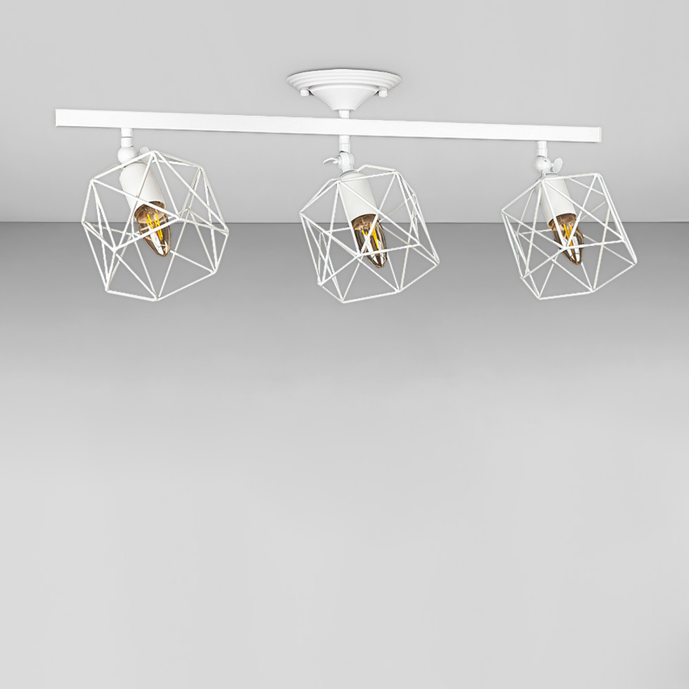 Стельова люстра на три лампи в стилі Лофт з металевими плафонами у вигляді клітки з поворотним механізмом.