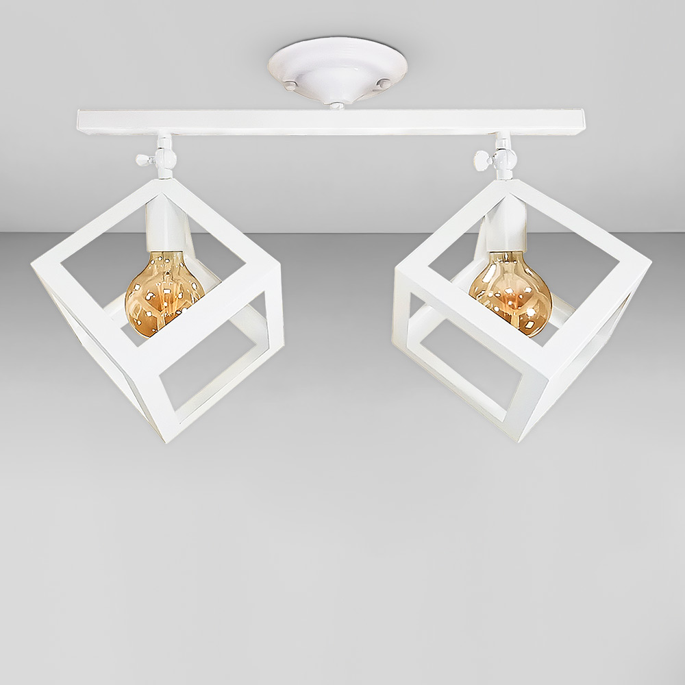 Стельова люстра на дві лампи в стилі Лофт з металевими плафонами у вигляді ребер куба з поворотним механізмом.