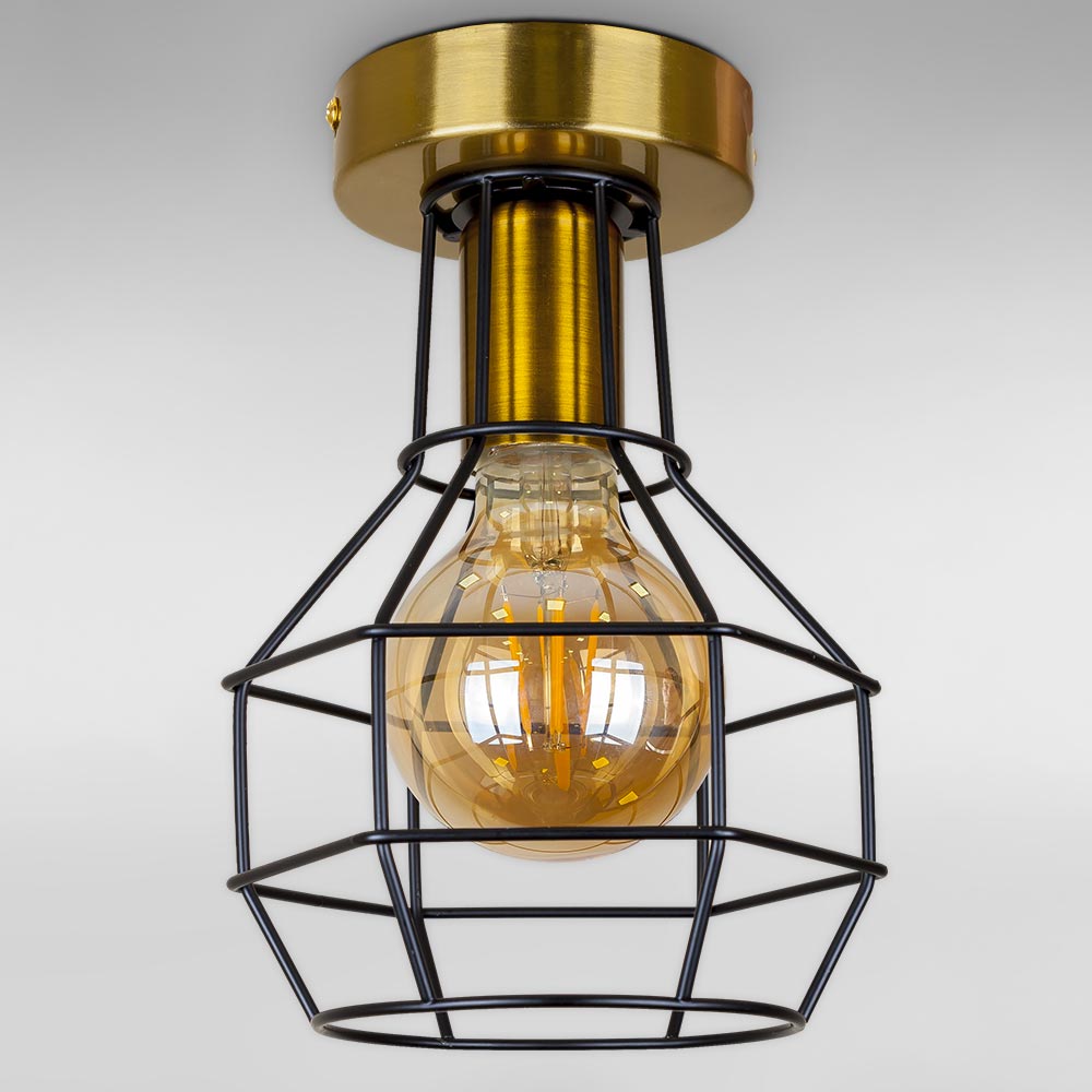 Стельова люстра на одну лампу в стилі Лофт з металевим плафоном у вигляді клітки.