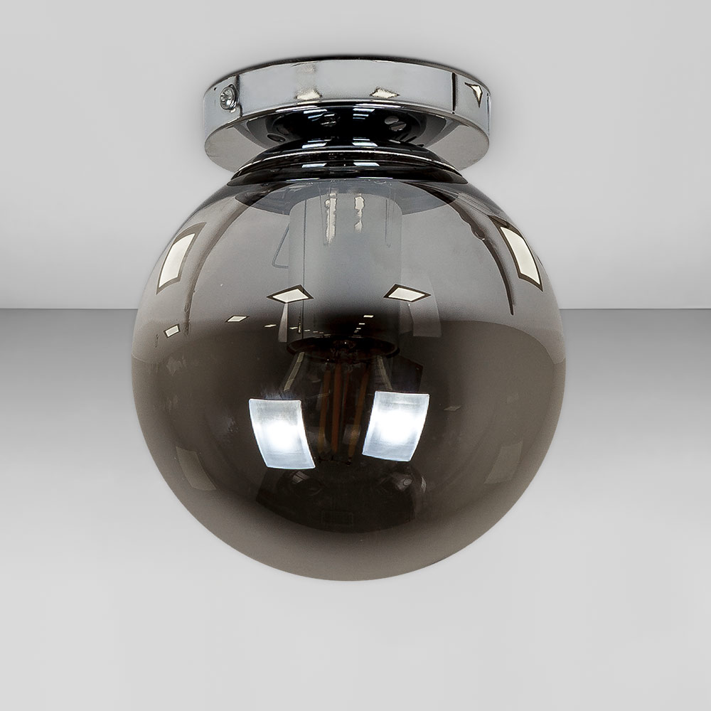 Стельова люстра на одну лампу в стилі Лофт зі скляним плафоном у вигляді кулі.