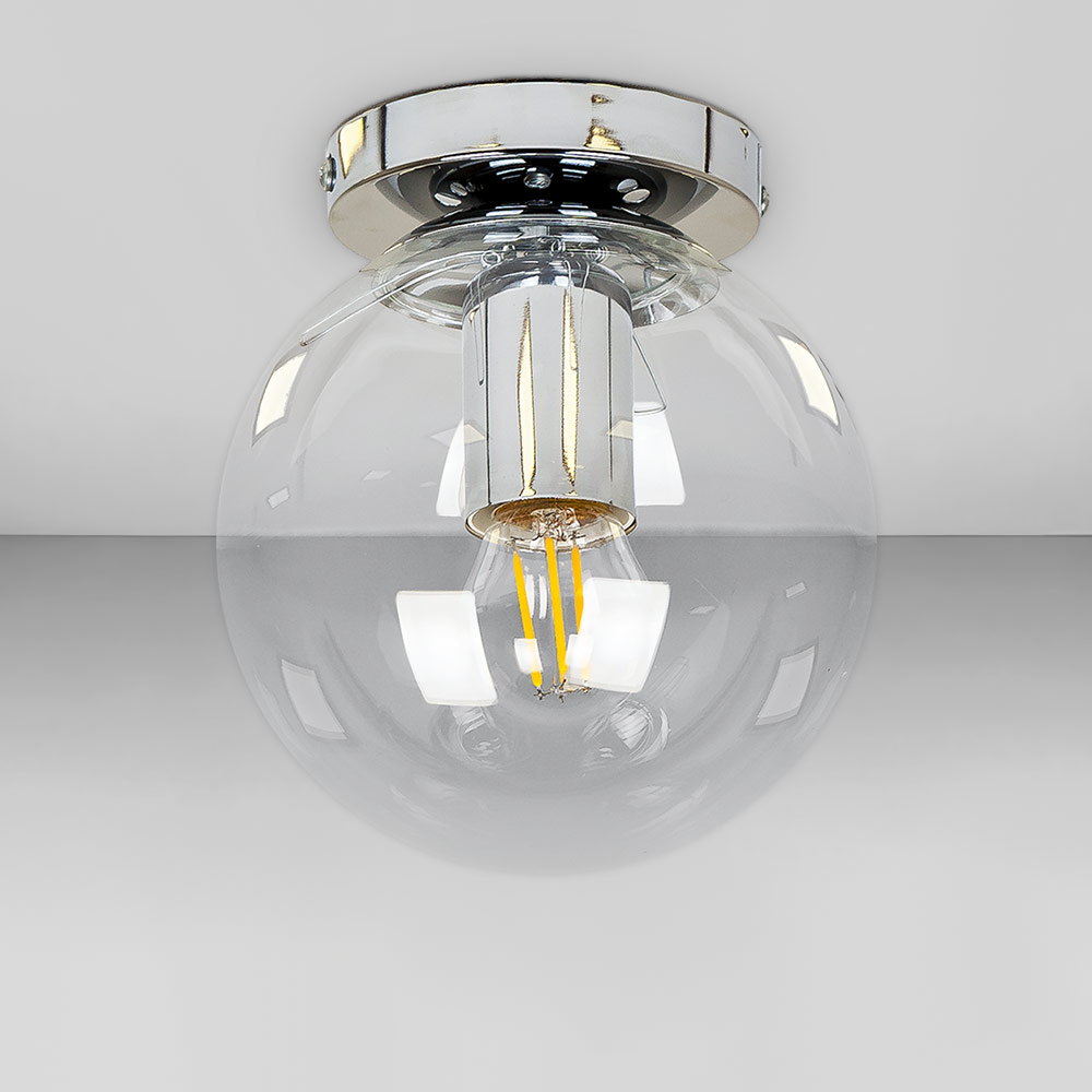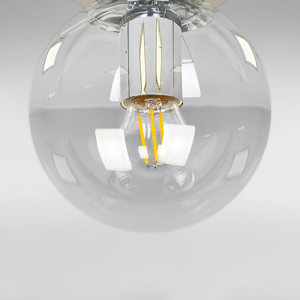 Стельова люстра на одну лампу в стилі Лофт зі скляним плафоном у вигляді кулі.