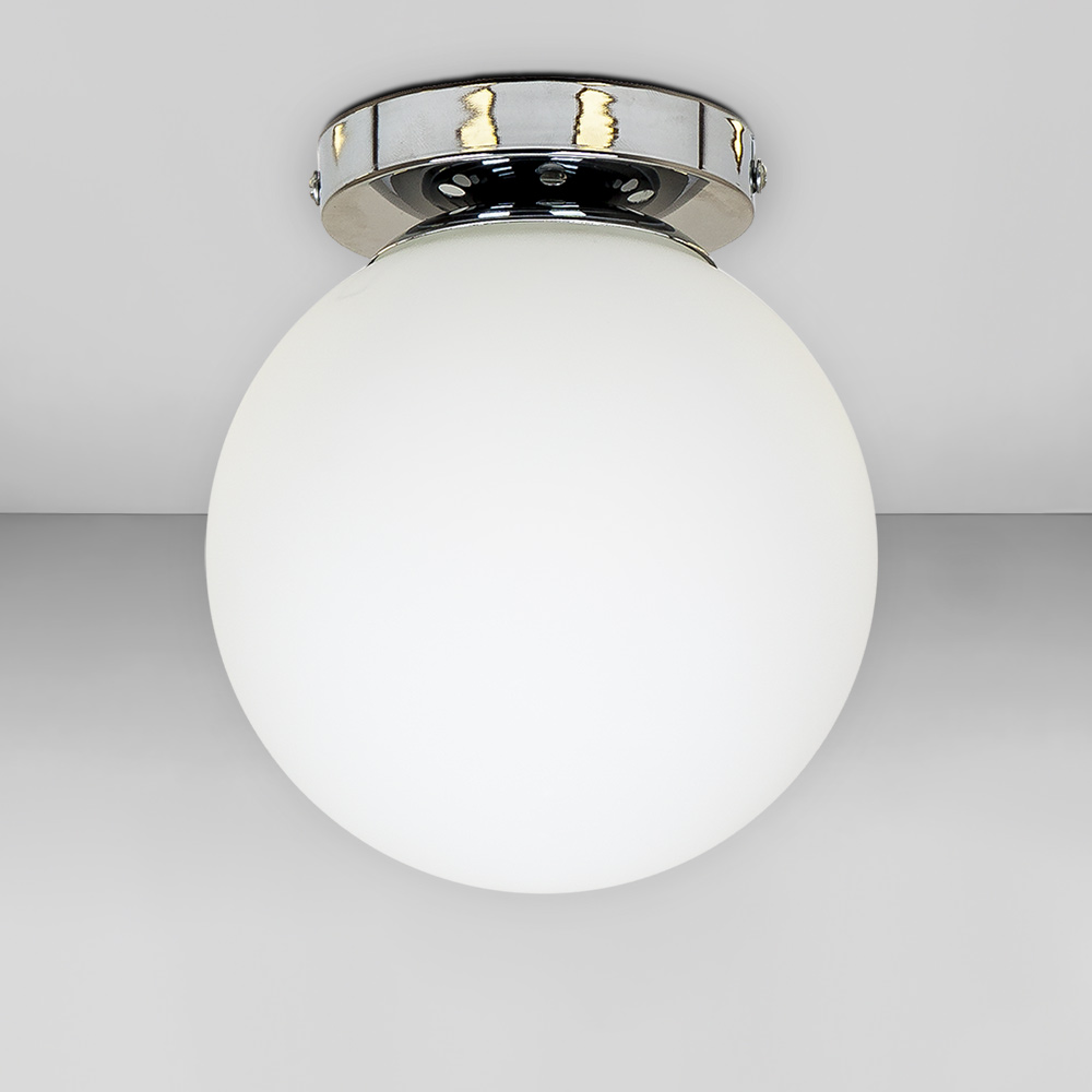 Стельова люстра на одну лампу в стилі Лофт зі скляним плафоном у вигляді кулі.