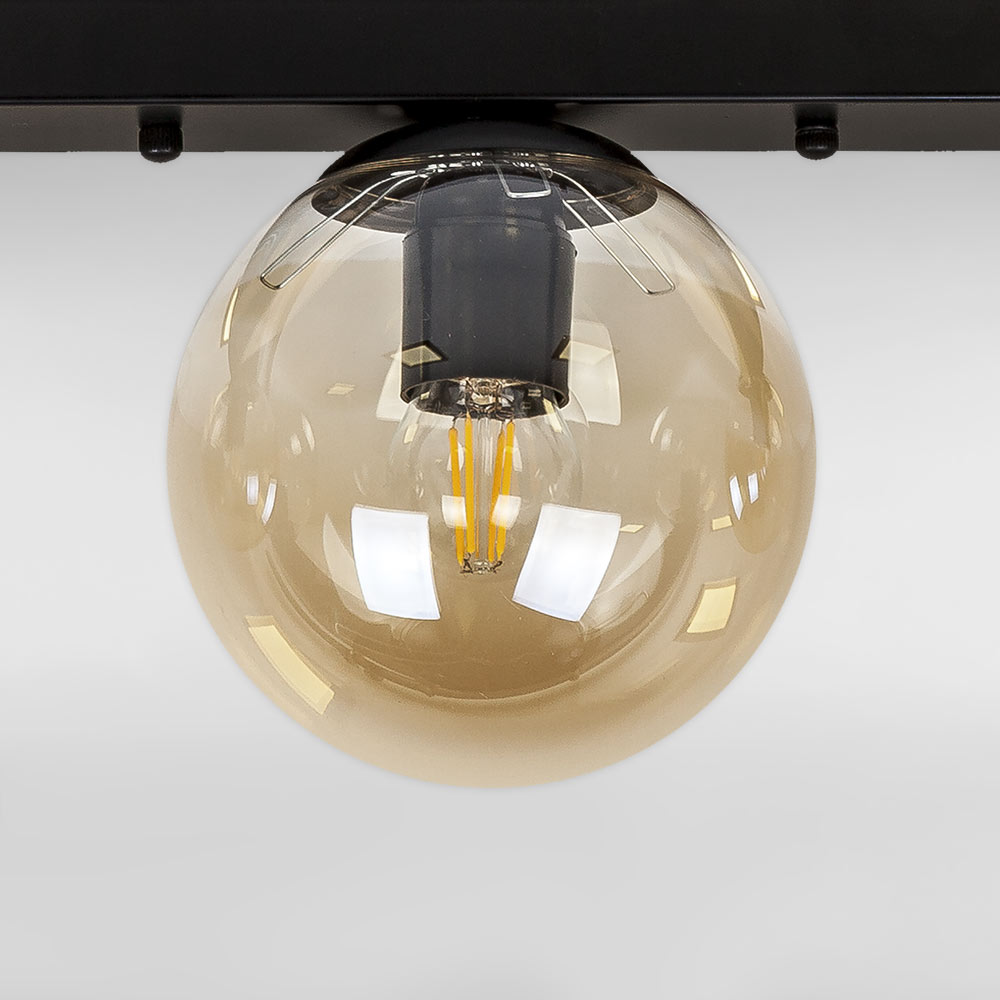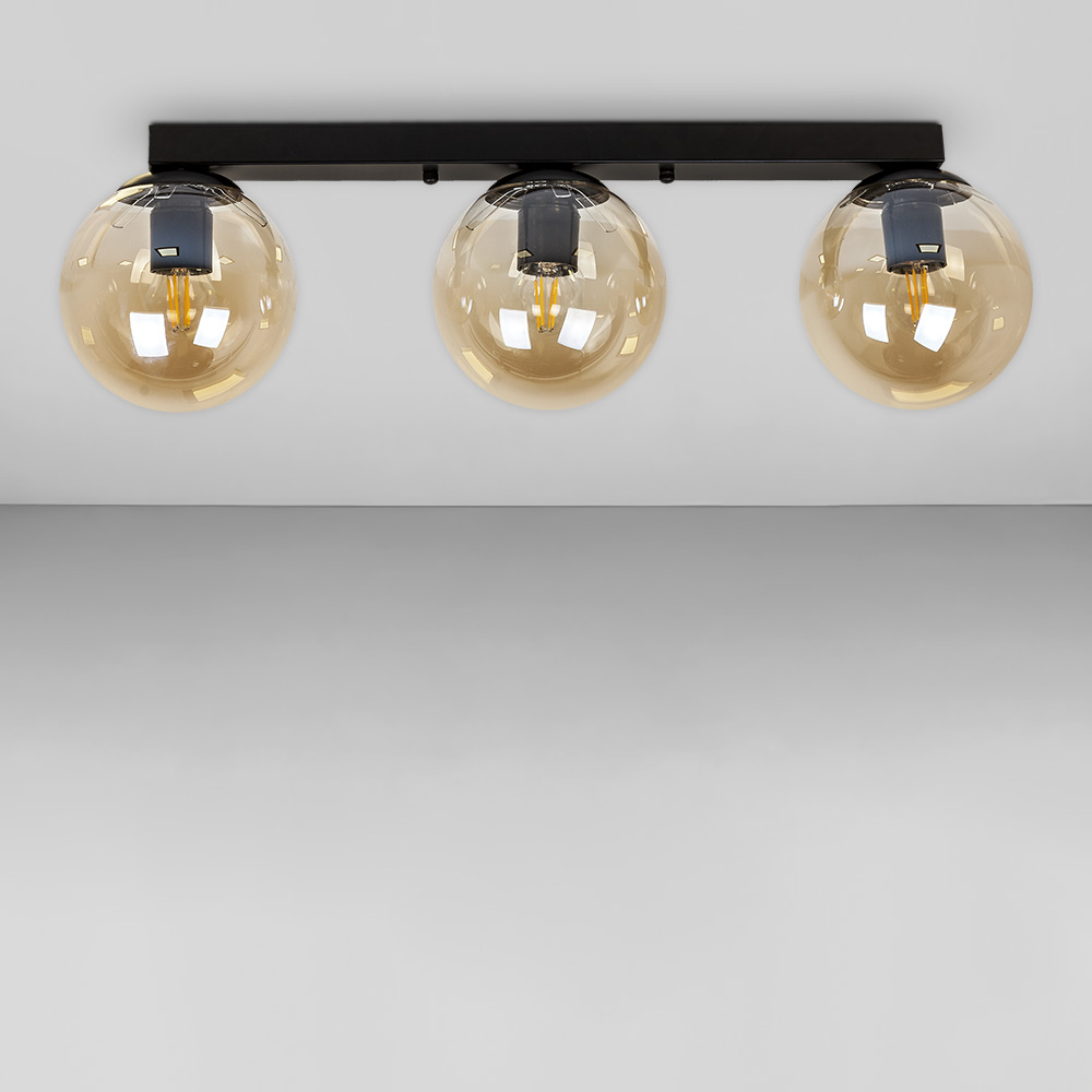 Люстра стельова лофт Light House LS-18638F-3 BK+BR (500) чорна, плафон бурштиновий