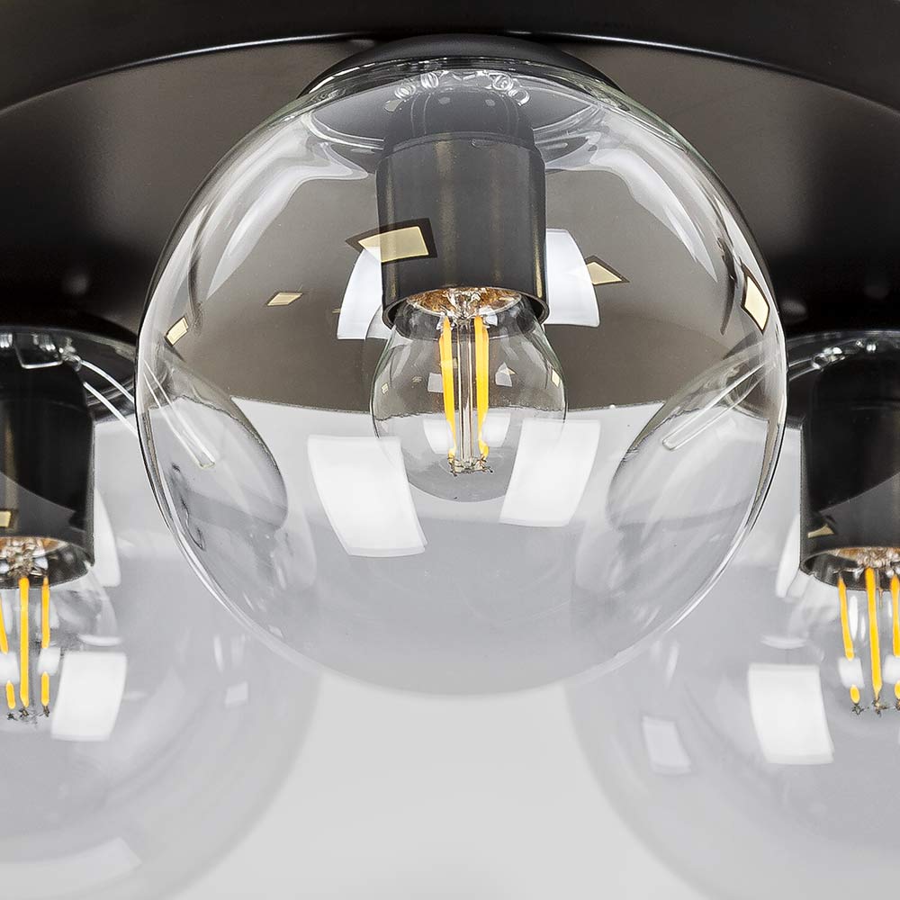 Стельова люстра на три лампи в стилі Лофт зі скляним плафонами у вигляді кулі.