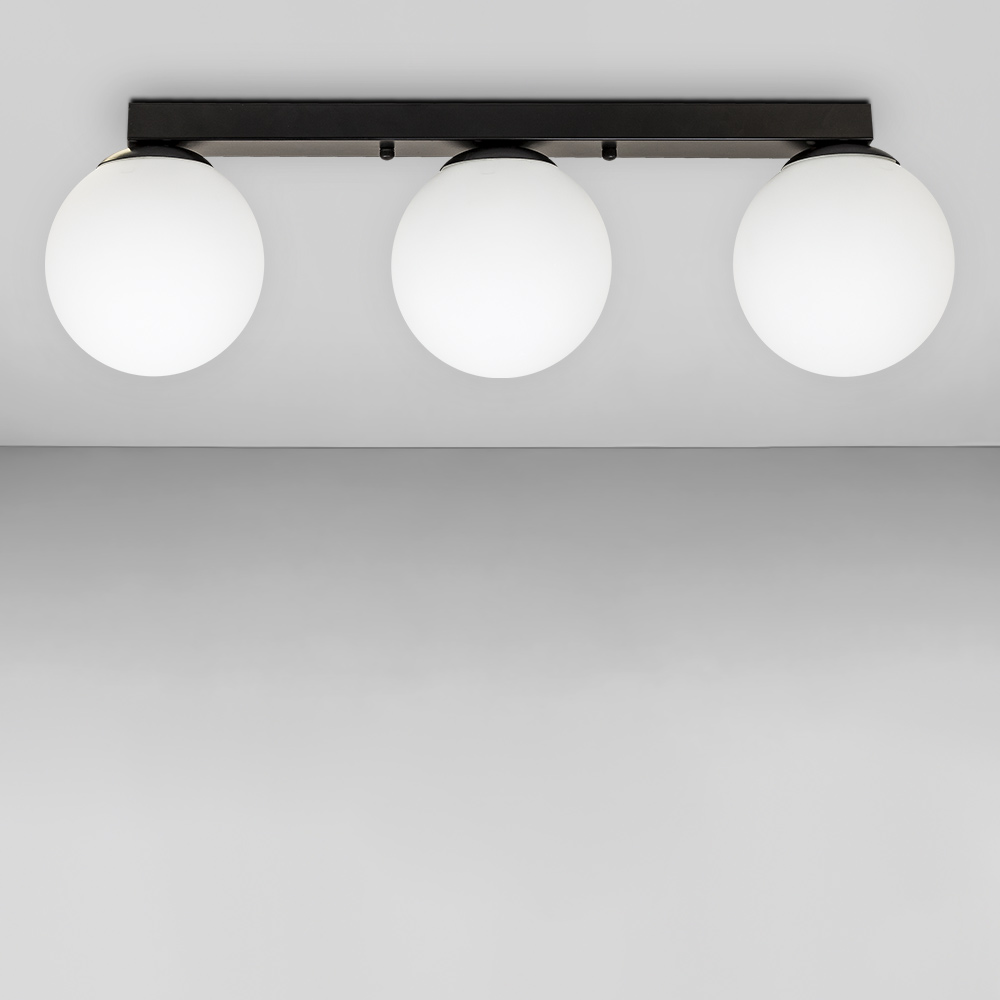 Стельова люстра на три лампи в стилі Лофт зі скляним плафонами у вигляді кулі.