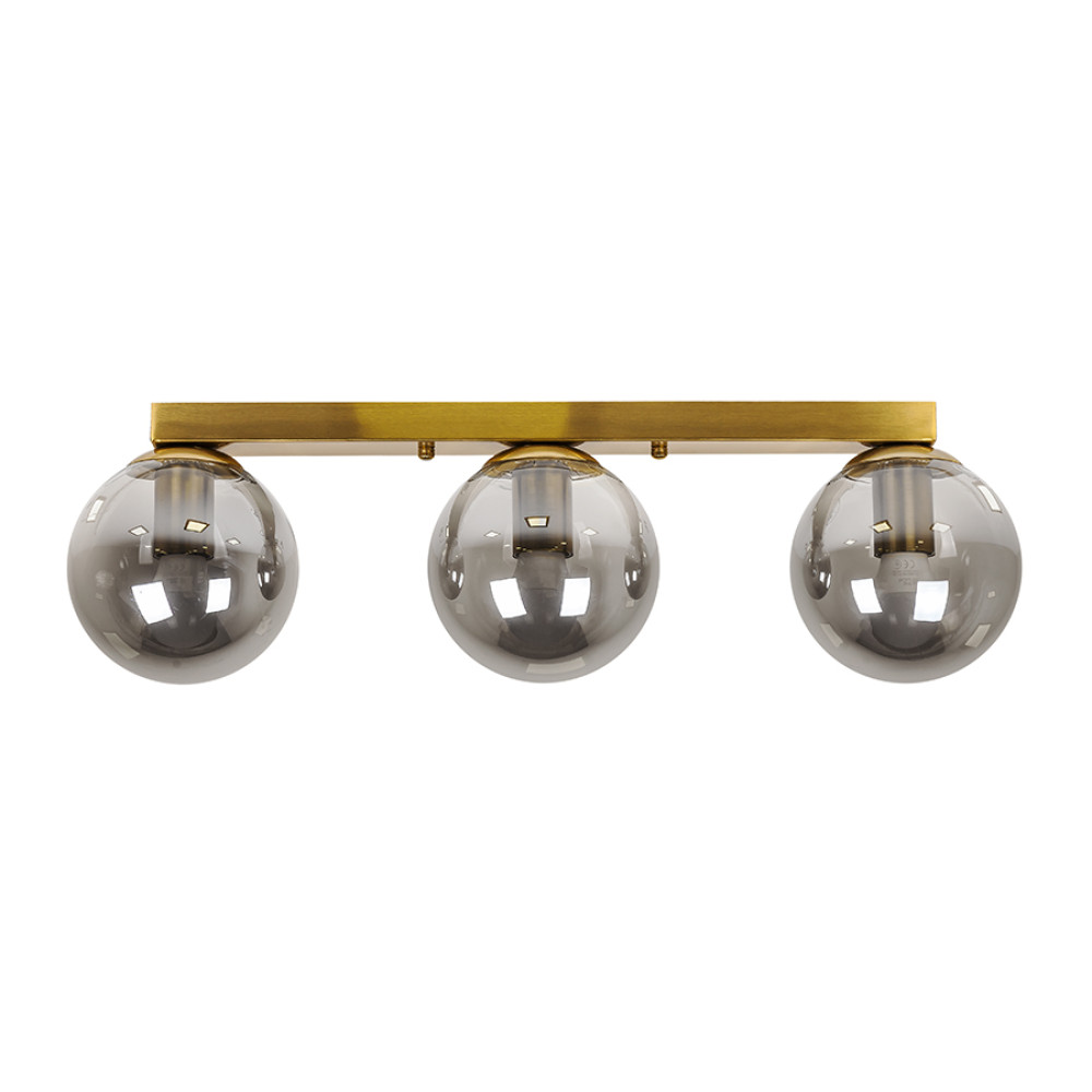 Стельова люстра на три лампи в сучасному стилі зі скляними плафонами у вигляді кулі.
