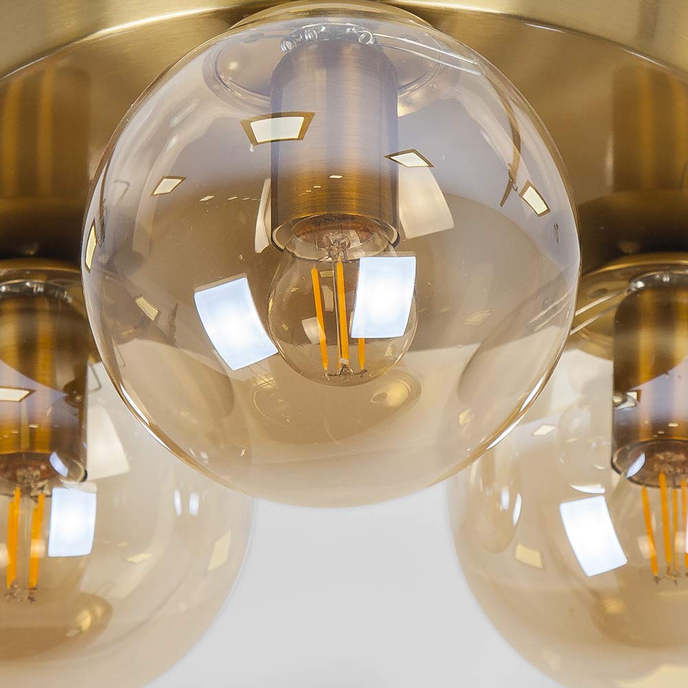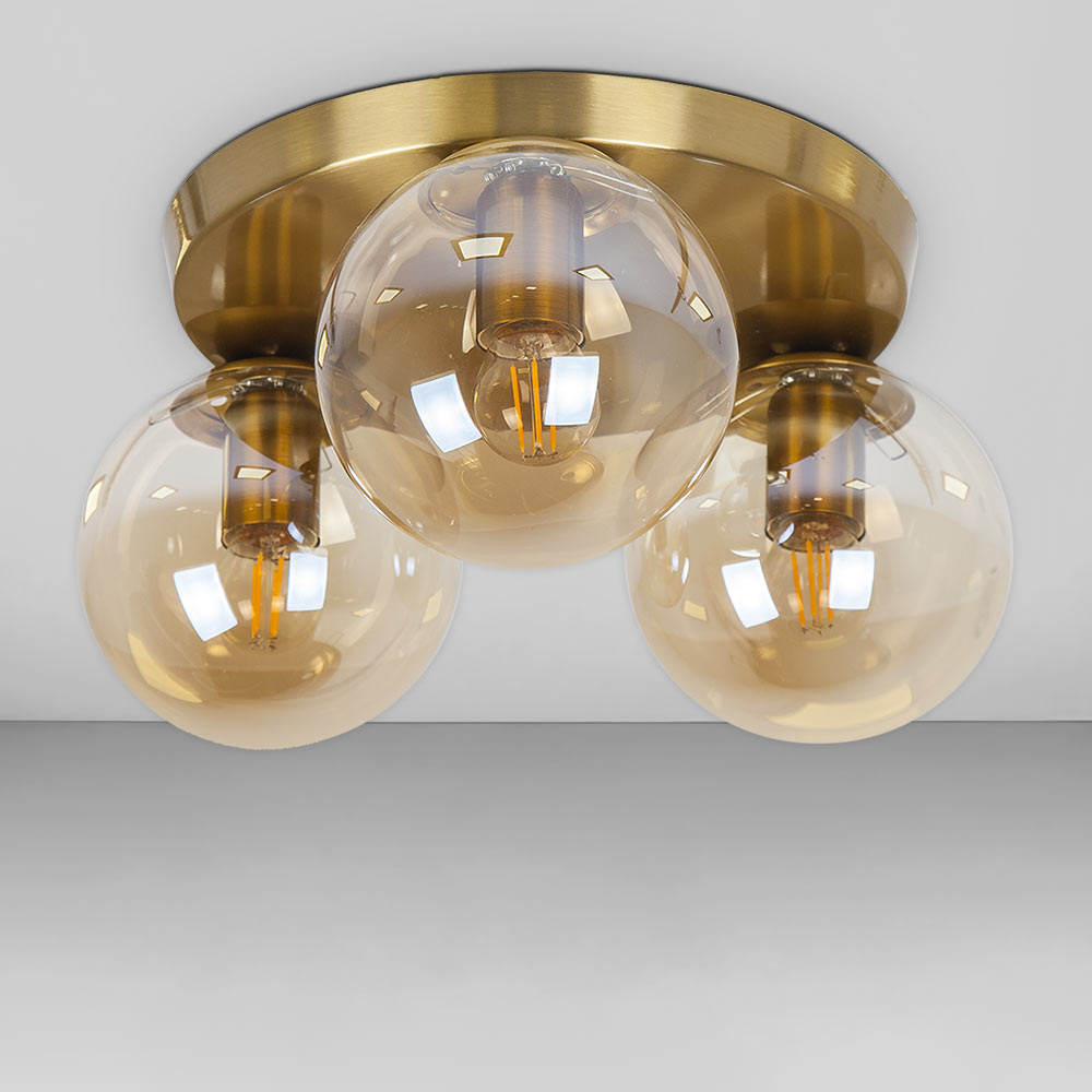 Стельова люстра на три лампи в стилі Лофт зі скляним плафонами у вигляді кулі.