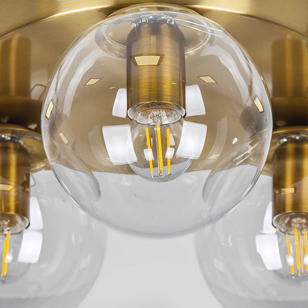 Стельова люстра на три лампи в стилі Лофт зі скляним плафонами у вигляді кулі.