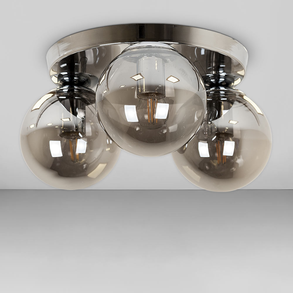 Стельова люстра на три лампи в стилі Лофт зі скляним плафонами у вигляді кулі.