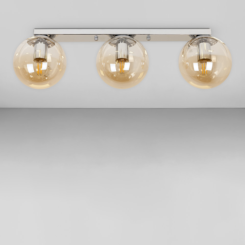 Стельова люстра на три лампи в стилі Лофт зі скляним плафонами у вигляді кулі.