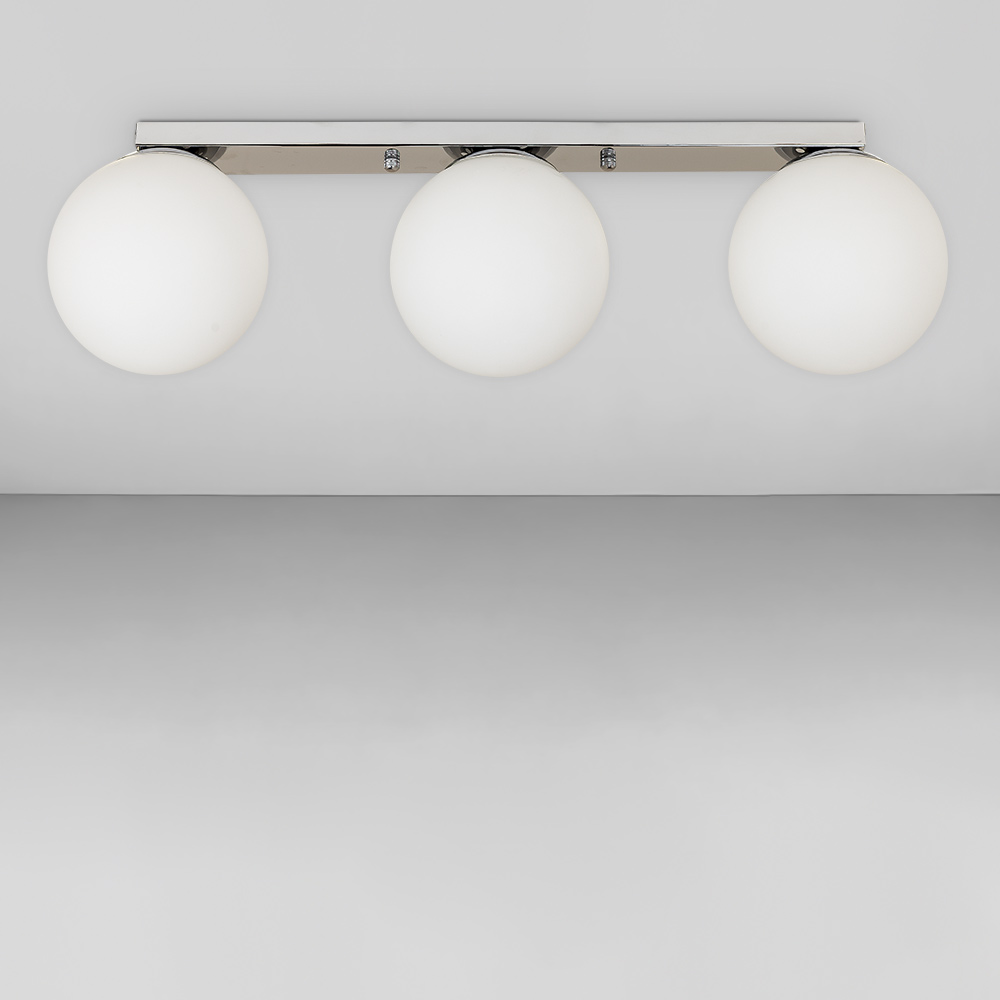Стельова люстра на три лампи в стилі Лофт зі скляним плафонами у вигляді кулі.
