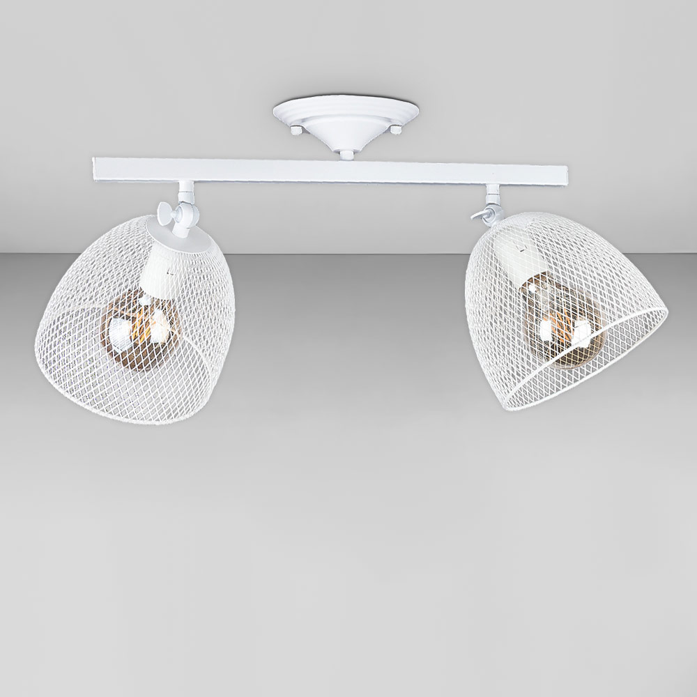 Стельова люстра на дві лампи в стилі Лофт з металевими плафонами у вигляді сітки з поворотним механізмом.