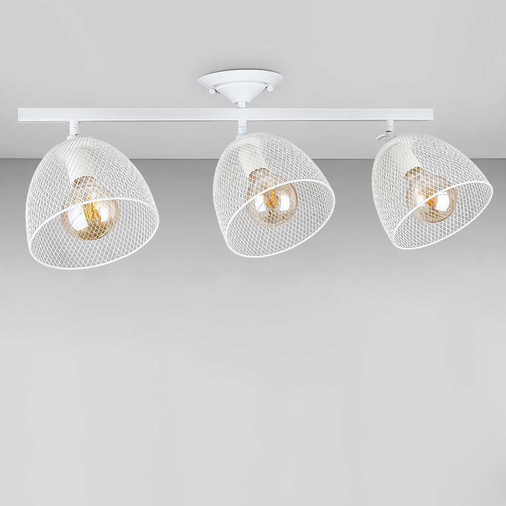 Стельова люстра на три лампи в стилі Лофт з металевими плафонами у вигляді сітки з поворотним механізмом.