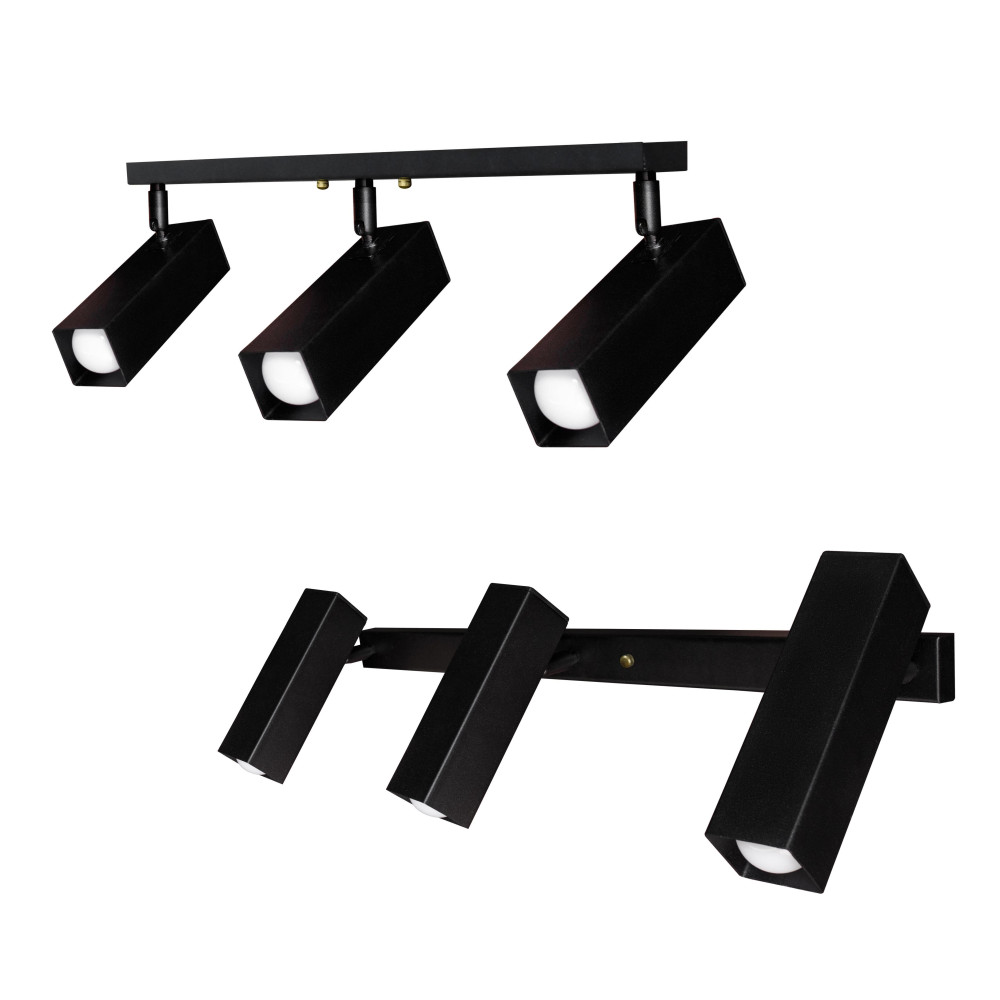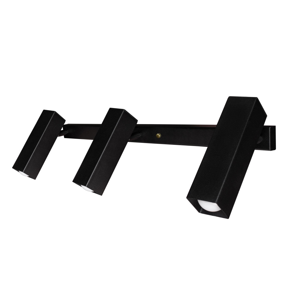 Стельова люстра на три лампи з металевими плафонами прямокутної форми з поворотним механізмом.