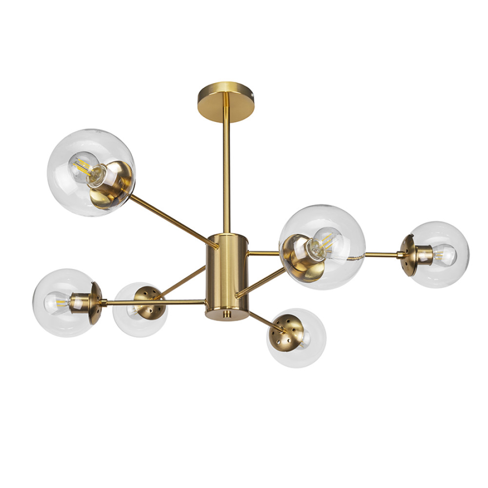 Немає відгуків про товар Люстра стельова молекула Levistella 7526033-6 BRZ+CL бронза, плафон прозорий