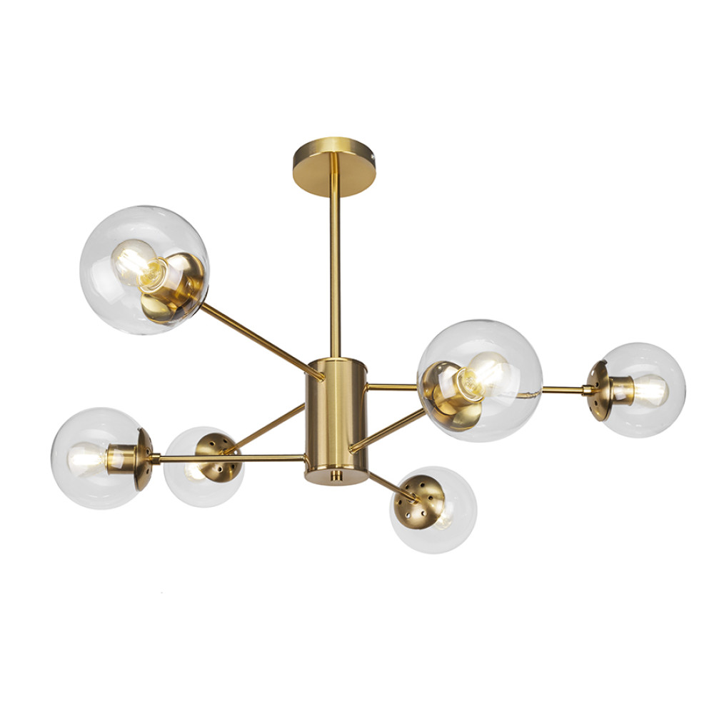 Декоративні стельові люстри молекули в сучасному стилі на шість ламп з плафонами сферичної форми.