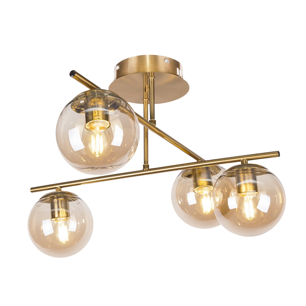 Декоративна стельова люстра молекула в сучасному стилі на чотири лампи з плафонами сферичної форми.