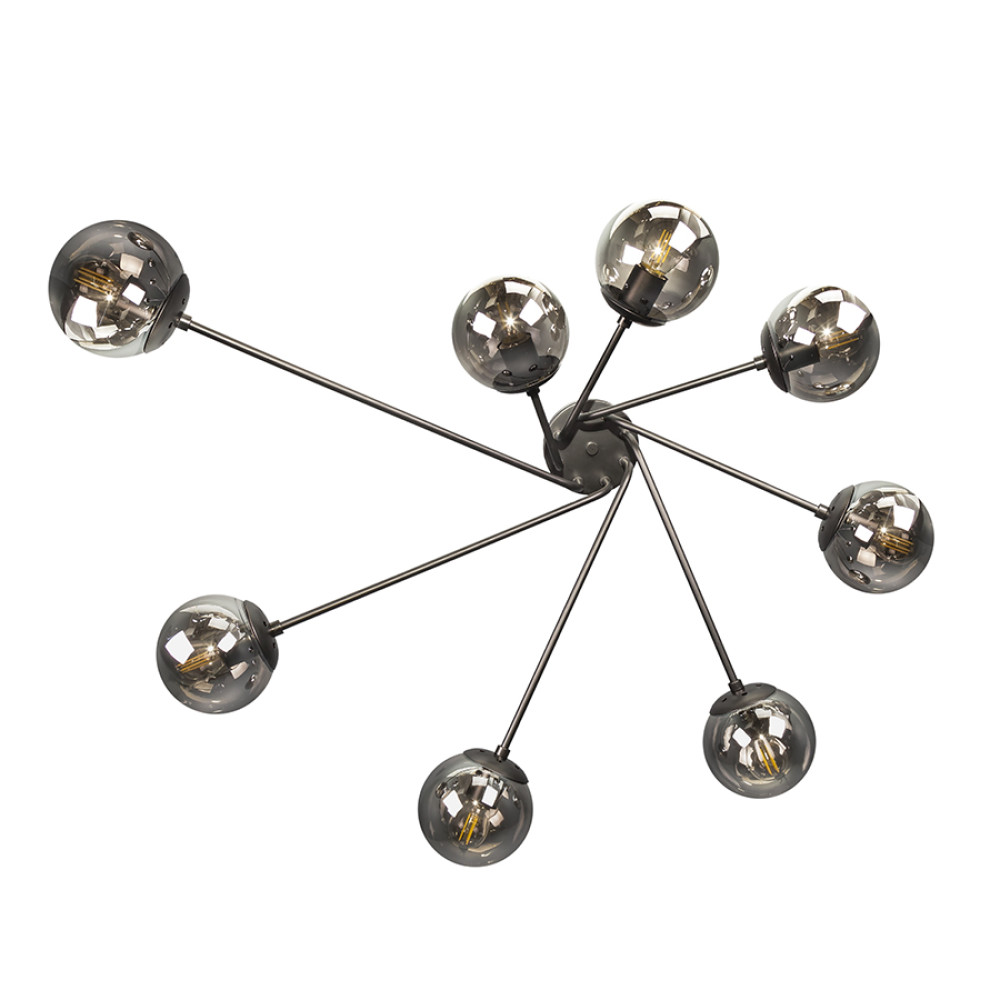 Декоративні стельові люстри молекули в сучасному стилі на вісім ламп з плафонами сферичної форми.