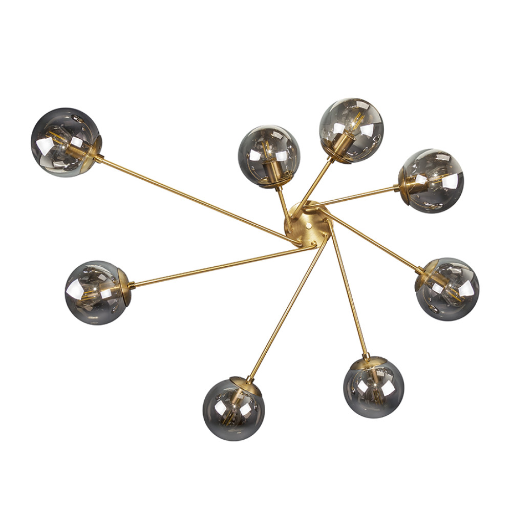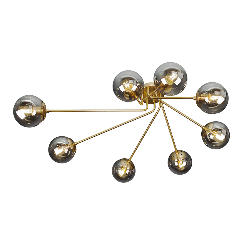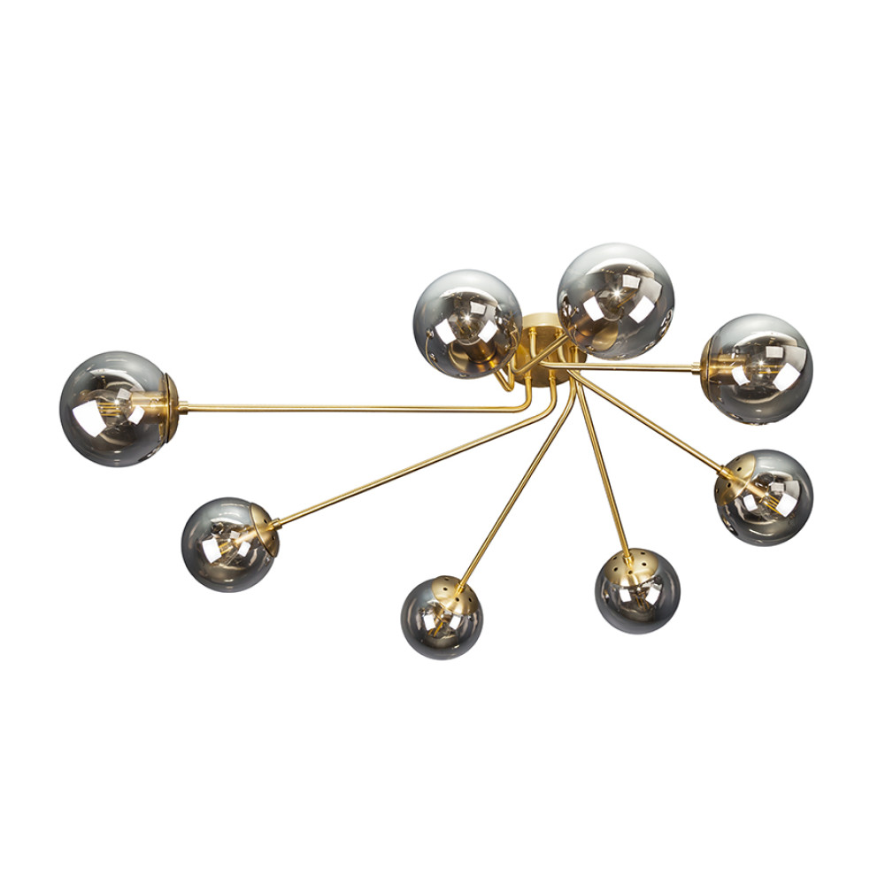Декоративні стельові люстри молекули в сучасному стилі на вісім ламп з плафонами сферичної форми.