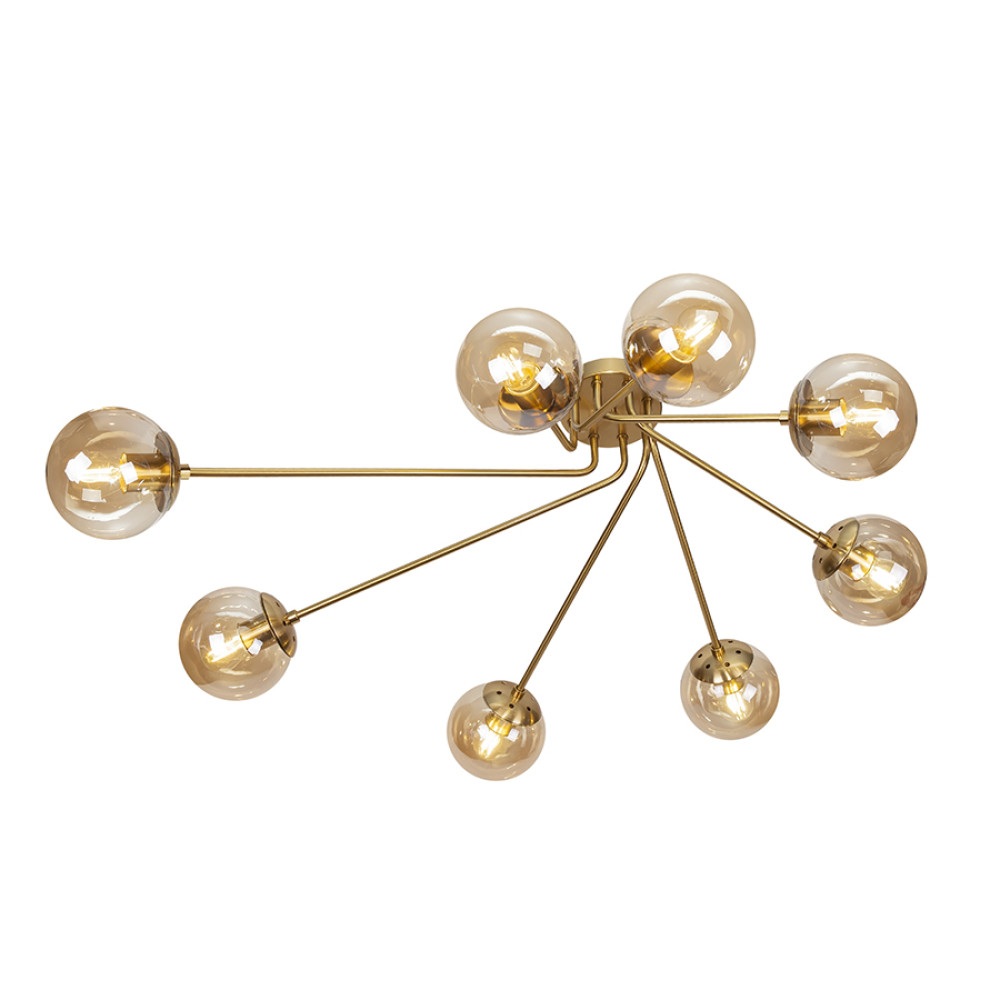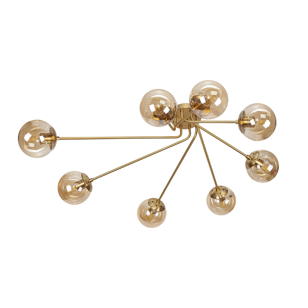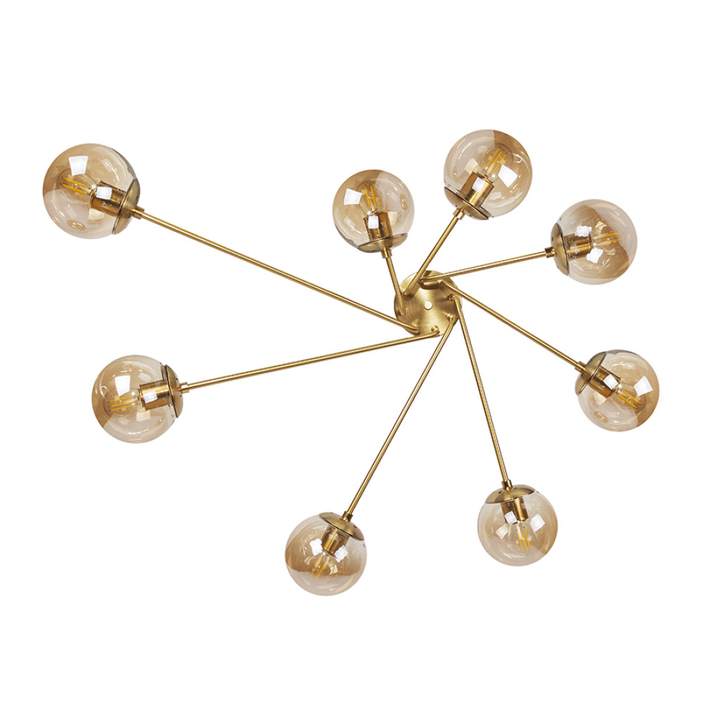 Декоративні стельові люстри молекули в сучасному стилі на вісім ламп з плафонами сферичної форми.